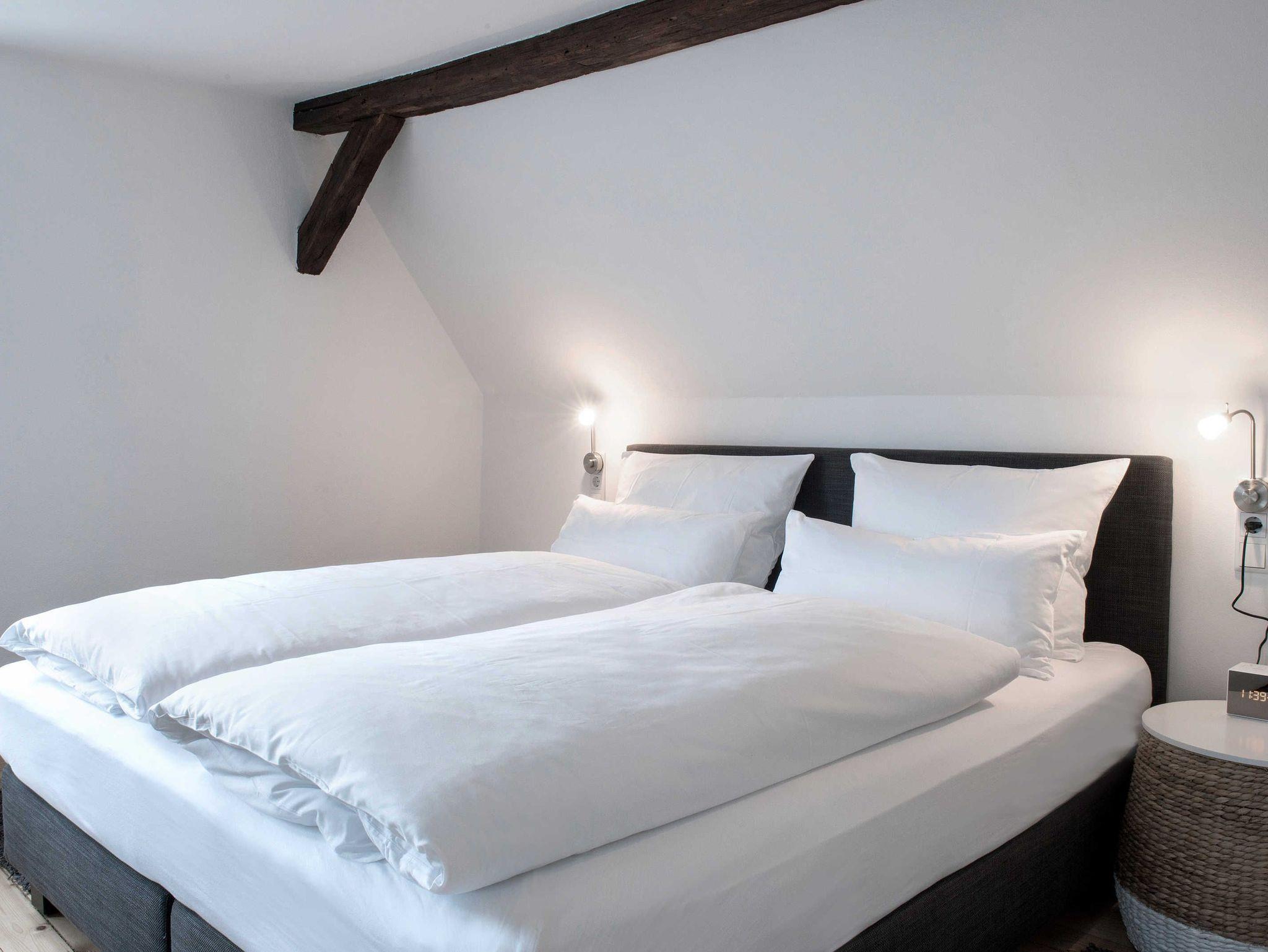 Auf zwei Ebenen bietet sie ein unverwechselbares Ambiente durch ein harmonisches Wechselspiel von romantischem Fachwerk und modernstem Wohnkomfort. Bitte beachten Sie aber, dass die Deckenhöhe etwas niedriger als bei modernen Bauten ist. Der Blick aus dem Fenster gleitet über uralte Dächer auf das Grün des Stadtgartens.
