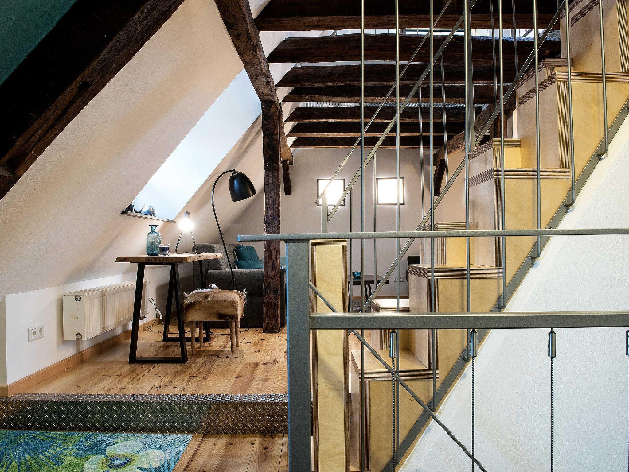 Die grundsanierte Wohnung in einem Haus aus dem achtzehnten Jahrhundert liegt im Zentrum der der Altstadt, nur wenige Meter vom historischen Rathaus entfernt.