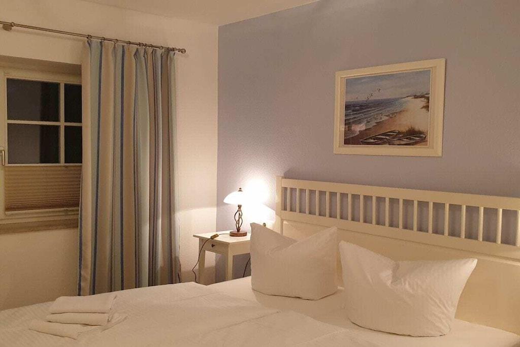 Königin Margarete ist eine unserer gemütlichen komfortablen Ferienwohnungen im Erdgeschoss mit idyllischem Blick auf den Greifswalder Bodden. Die gehobene Ausstattung ist auf max. 3 Personen (2 Erw.+ 1 Kleinkind) abgestimmt und ermöglicht Ihnen auch bei trübem Wetter, angenehme Urlaubstage zu verbringen. Direkt an das Wohnzimmer grenzt die Gartenterrasse. Neben der hochwertigen Küche gehören zur Ferienwohnung 1 Schlafzimmer mit Doppelbett und 1 modernes Duschbad mit Fenster