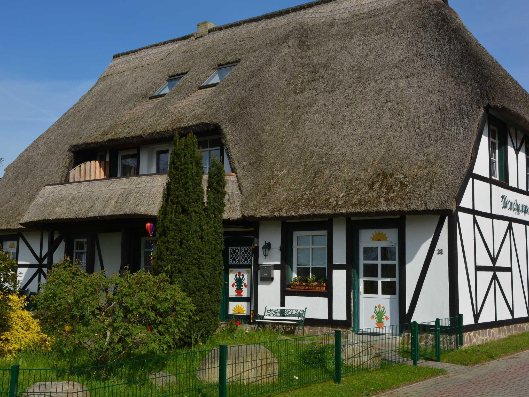 Diese reetgedeckte Ferienhaus ,,Mönchgutperle liegt direkt am Bodden oder Hagenschen Wiek.