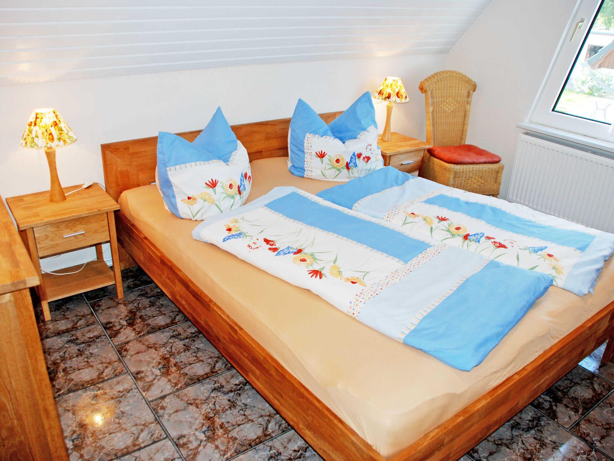 Zur Ausstattung der kleinen Pantryküche im Flur gehören ein kleines Cerankochfeld, Spüle, Kühlschrank, Wasserkocher und Kaffeemaschine. Aus dieser Wohneinheit haben Sie einen herrlichen Blick auf den Bodden. Auf der Wiese mit Gartenmöbeln können Sie die Sonne genießen oder bei einem Gläschen Wein entspannen. Ein Kinderreisebett und Hochstuhl können auf Wunsch gern gegen eine kleine Gebühr bereitgestellt werden. Auf Wunsch sind gegen Aufpreis bei Ihrer Anreise die Betten mir Bettwäsche bezogen und es liegen frische Handtücher bereit, bitte dann mitbuchen! Das Bad ist mit Dusche, WC, Fön und Waschtisch ausgestattet.