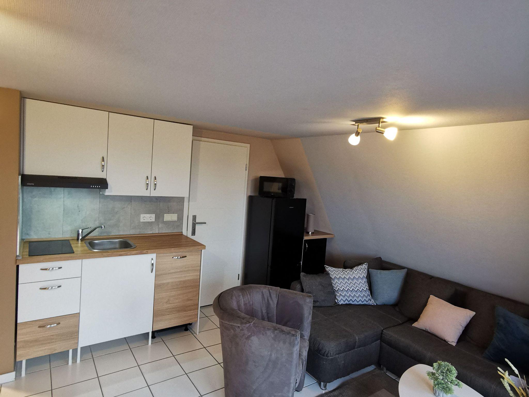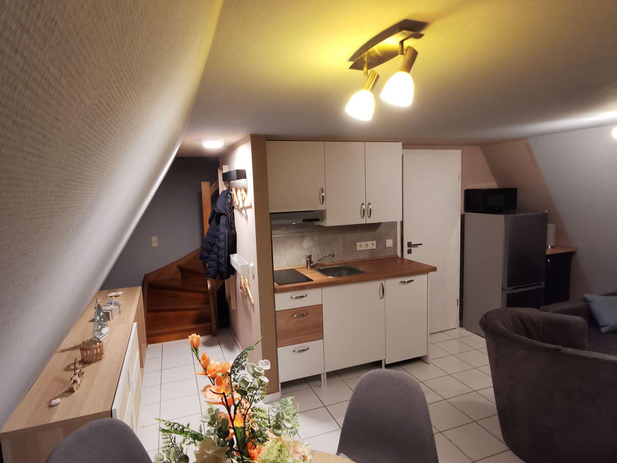Im Erdgeschoss befindet sich der gemühlich eingerichtet Wohn- und essbereich, ausgestattet mit einen Küche (Gefrierfach,Mikrowelle sowie Wasserkocher,Kaffeemaschine und Toaster.
