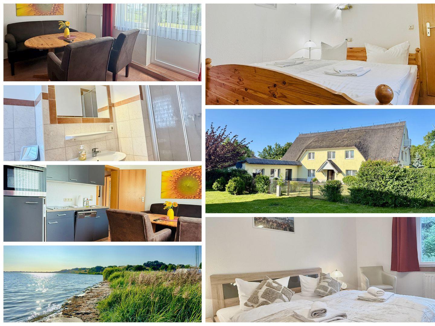Die Wohnung befindet sich im Erdgeschoss, nur wenige Schritte von der Badestelle am Bodden entfernt. Kostenfreie Parkplätze stehen direkt auf dem Grundstück zur Verfügung.