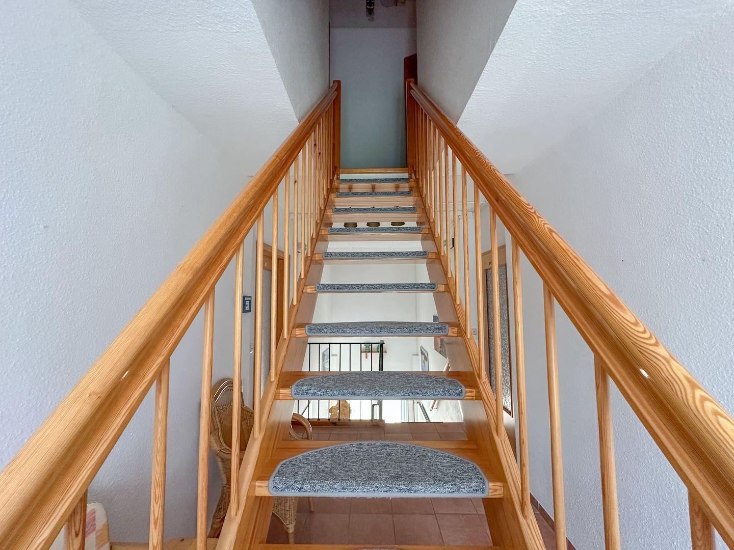 Die Wohnung befindet sich im Dachgeschoss mit Zugang zum gemeinschaftlichen Garten. Sie liegt ruhig, nur wenige Gehminuten von der Badestelle entfernt. Parkplätze sind kostenfrei direkt auf dem Grundstück verfügbar.