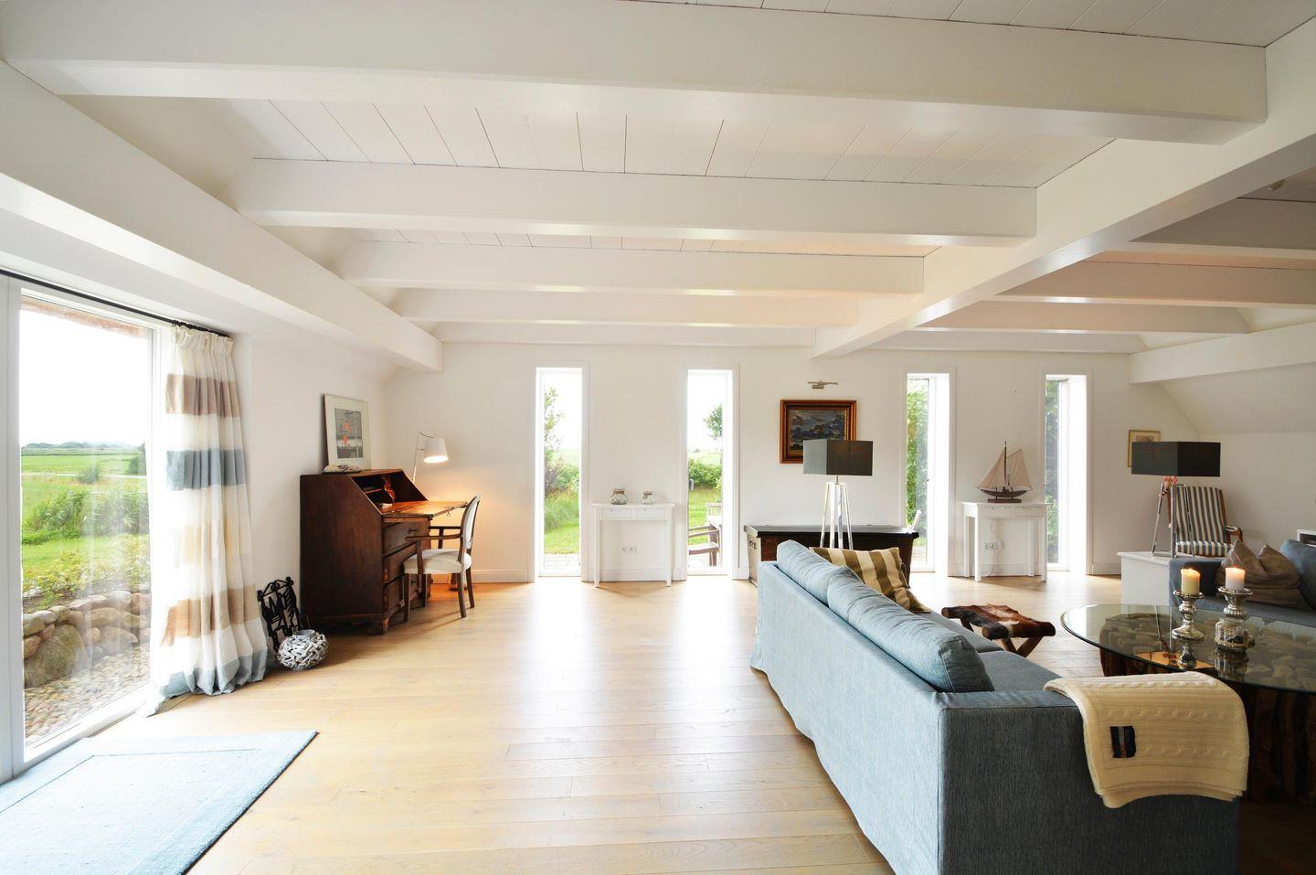 Lieben Sie die Weite der Marsch und modernen Komfort, traditionellen Landhausstil und zeitgenössisches Scandi-Design? Dann sind Sie im Reethus Dörpsend genau richtig! Die alte Hofstelle am Eingang zur Midlumer Marsch wurde in den vergangenen Jahren mit viel Liebe zum Detail umgebaut. Entstanden sind zwei äußerst großzügige Häuser mit neuen und antiken Möbeln, offenem Kamin bzw. Kachelofen, je fünf Schlafzimmern, 4 Bädern und eigener Sauna. Verbringen Sie einen wunderschönen Urlaub in diesen modernen, über 300m² großen Häusern.