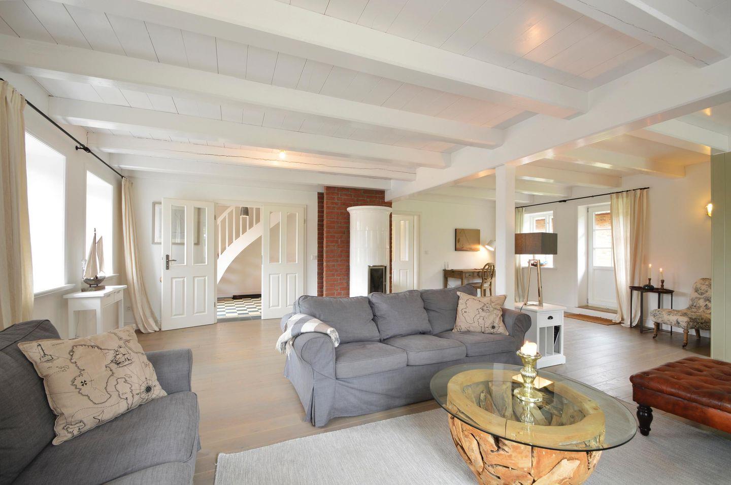 Lieben Sie die Weite der Marsch und modernen Komfort, traditionellen Landhausstil und zeitgenössisches Scandi-Design? Dann sind Sie im Reethus Dörpsend genau richtig! Die alte Hofstelle am Eingang zur Midlumer Marsch wurde in den vergangenen Jahren mit viel Liebe zum Detail umgebaut. Entstanden sind zwei äußerst großzügige Häuser mit neuen und antiken Möbeln, offenem Kamin bzw. Kachelofen, je fünf Schlafzimmern, 4 Bädern und eigener Sauna. Verbringen Sie einen wunderschönen Urlaub in diesen modernen, über 300m² großen Häusern.