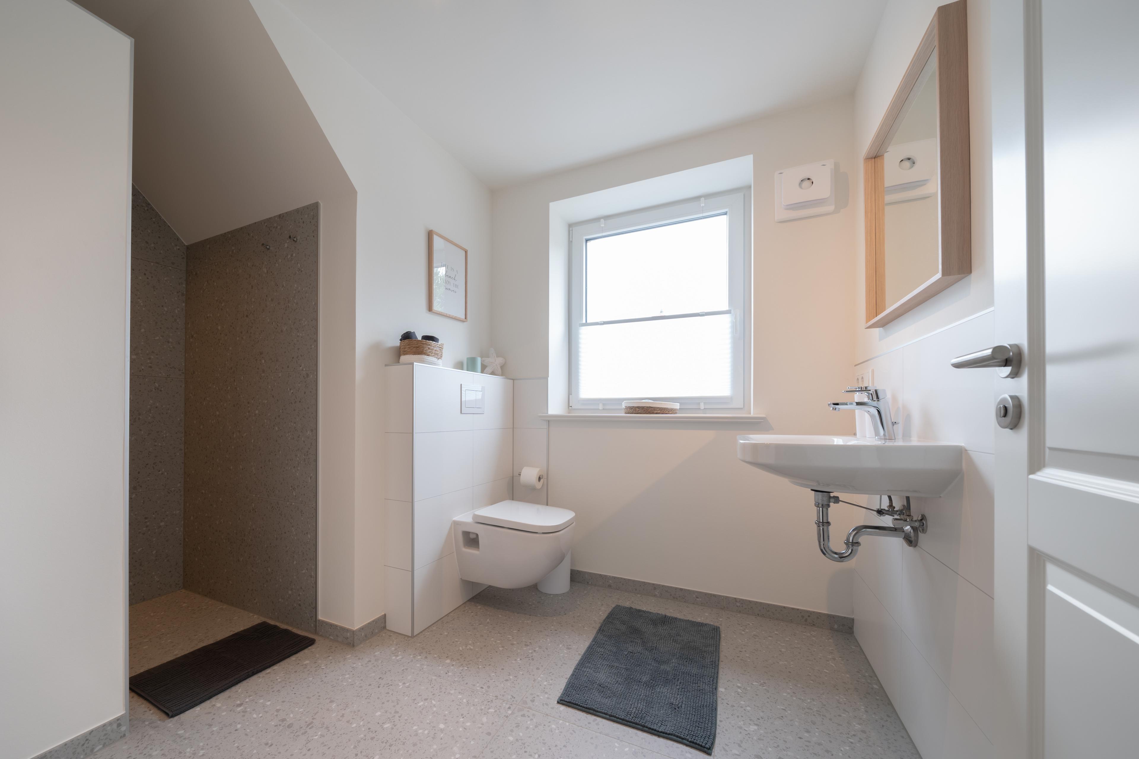 In der oberen Etage gibt es zwei Schlafzimmer - ein Zimmer mit Doppelbett (1,80 x 2,00 m) und ein Zimmer mit zwei Einzelbetten, die nach Bedarf als Doppelbett genutzt werden können. Ein kleines HomeOffice - extra Raum mit LAN-Anschluss) - steht dir ebenfalls zur Verfügung. Natürlich befindet sich auch auf der Etage ein vollausgestattetes Duschbad.