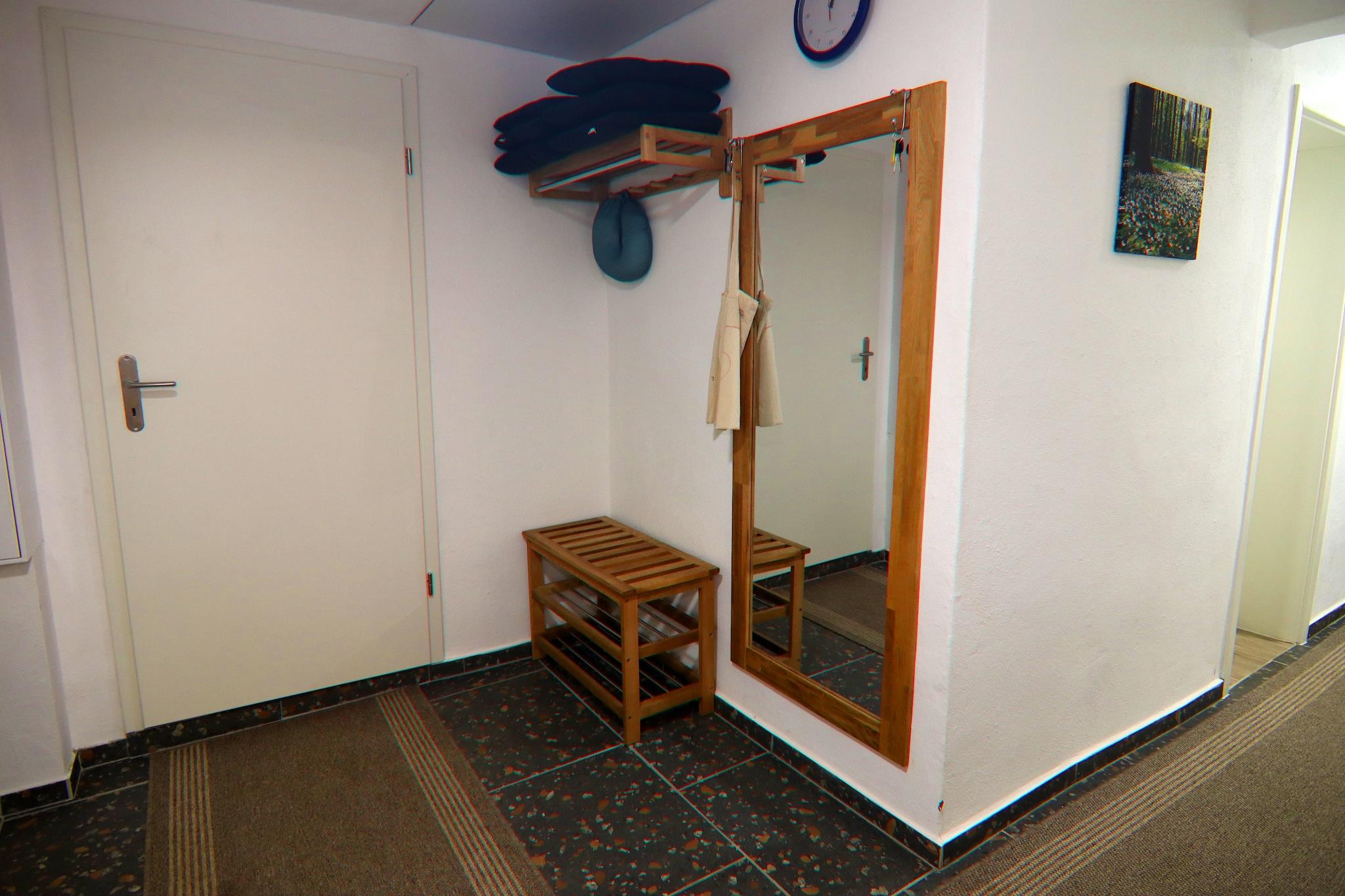 Det tidligere renoverede bondehus ligger i landsbyen på en indhegnet grund med overdækket terrasse, havemøbler og grill lige over for det lille feriekompleks Havelblick (DMS02089 og DMS021028). Den fælles sauna kan benyttes der mod betaling. Rådyr, rådyr, vildsvin, fiskeørn, havørne og traner kan iagttages fra udsigtstårnet på ejendommen. Som velkomst modtager du en krukke med syltetøj lavet af hjemmedyrket frugt fra udlejer. Højdepunkter: slutrengøring, vand, WiFi inkluderet, 10% rabat på Kormoran kanoudlejning (4 km) Feriekomplekset har desuden et lille indendørs legeområde med boldbassin, rutsjebane, bordfodbold, poolbord, lille trampolin, dart, tv og dvd-afspiller samt film og spillekonsol (herunder spil), som kan nås via en trappe. Havel indstiksstedet inviterer til dagsture på vandet Udlejer samarbejder med et kanoudlejningsfirma med levering og returservice. Cykel- og vandreture gennem regionen er mulige direkte fra din hoveddør. De tæt beliggende Havel kildesøer byder på perfekte forhold til badning og fiskeri.