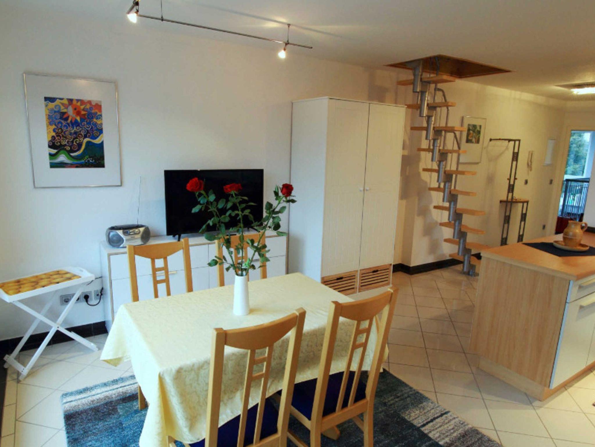 Die Wohnung hat ein Schlafzimmer für zwei Personen mit 2 Einzelbetten, im Wohnzimmer befindet sich eine neue ausziehbare Schlafcouch, die von einer weiteren Person belegt werden kann.