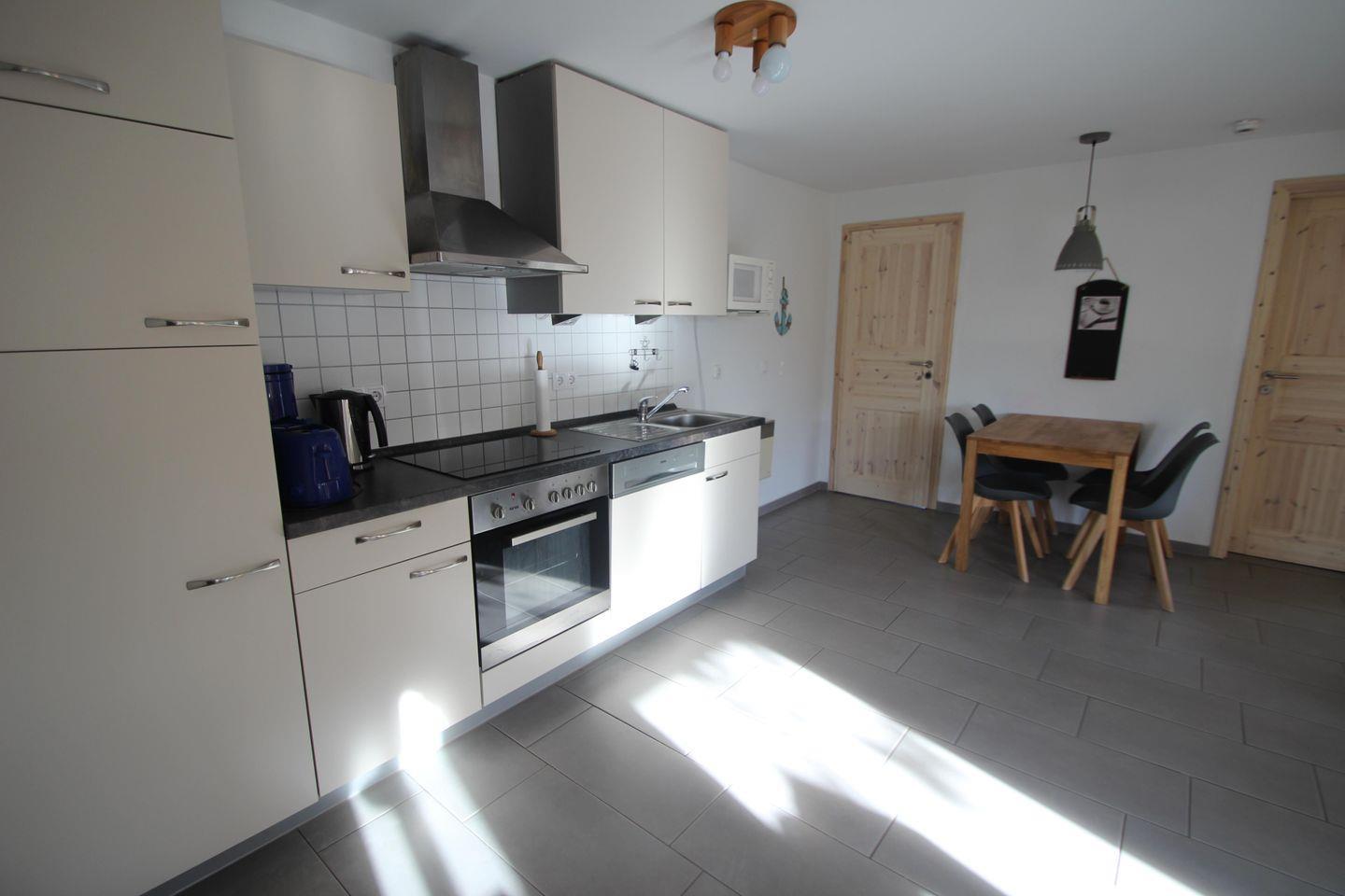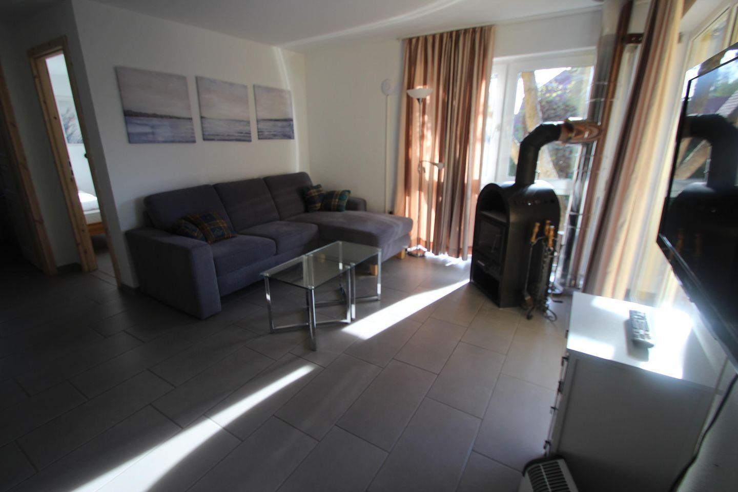 Die Doppelhaushälfte bietet Platz für bis zu 4 Personen auf einer Etage mit 2 Schlafzimmern, offenem Wohn- und Essbereich, Küchenzeile, Terrasse und Abstellraum.