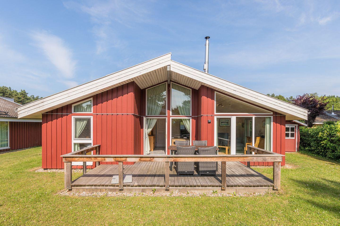 Das Ferienhaus im skandinavischen Stil bietet Platz für bis zu 4 Personen auf einer Etage mit 2 Schlafzimmern, Wohn-/Essbereich, Einbauküche, Sauna und Whirlpool und Pkw-Stellplatz. Energiekosten werden nach Verbrauch abgerechnet.