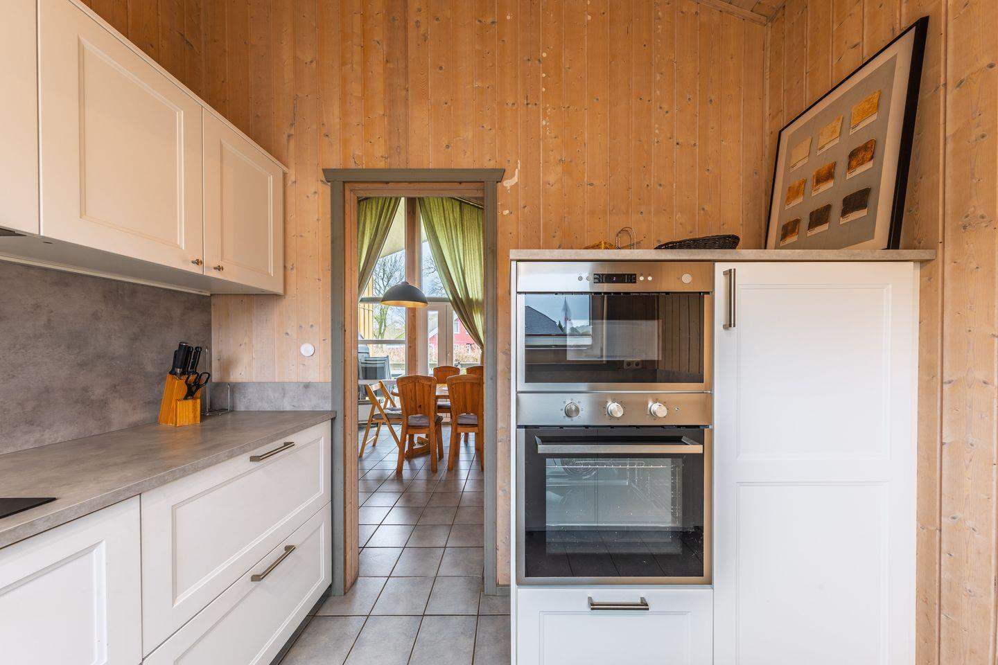 Das Ferienhaus im skandinavischen Stil bietet Platz für bis zu 4 Personen auf einer Etage mit 2 Schlafzimmern, Wohn-/Essbereich, Einbauküche, Sauna und Whirlpool und Pkw-Stellplatz. Energiekosten werden nach Verbrauch abgerechnet.