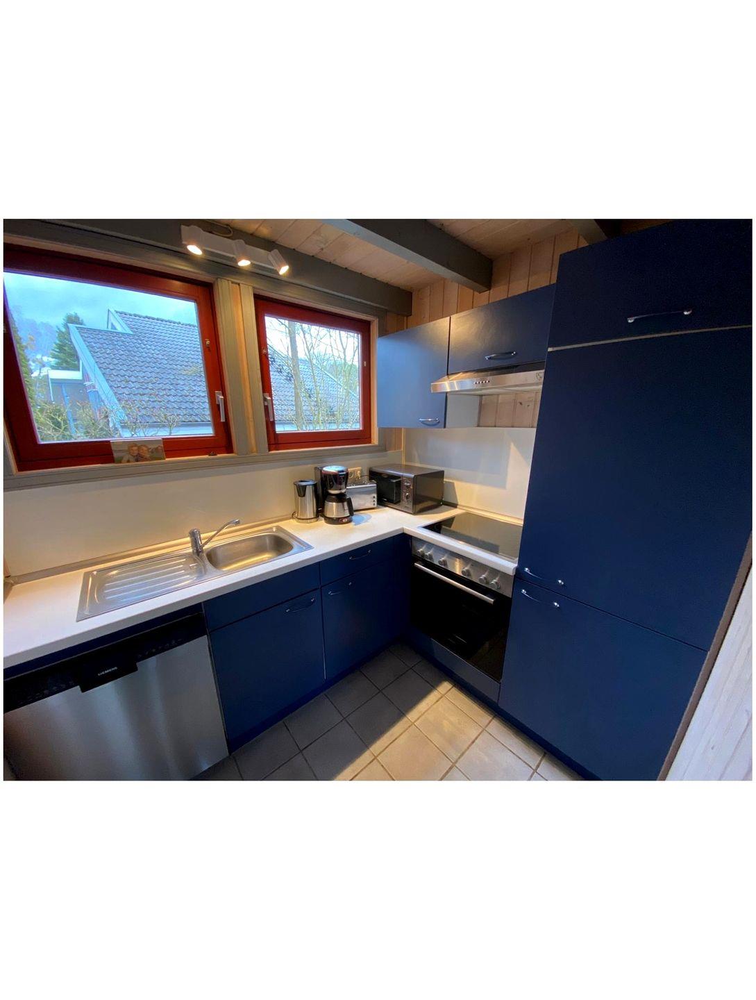 Das Ferienhaus im skandinavischen Stil bietet Platz für bis zu 6 Personen auf 2 Etagen mit 2 Schlafzimmern und offener Schlafgalerie, Wohn-/Essbereich, Einbauküche, Badezimmer mit Sauna, Terrasse, Abstellraum und Pkw-Stellplatz. Die Energiekosten werden nach Verbrauch abgerechnet.