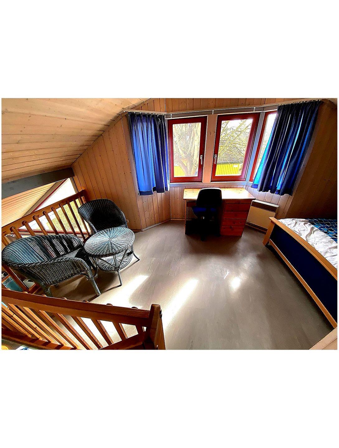 Das Ferienhaus im skandinavischen Stil bietet Platz für bis zu 6 Personen auf 2 Etagen mit 2 Schlafzimmern und offener Schlafgalerie, Wohn-/Essbereich, Einbauküche, Sauna, Terrasse, Abstellraum und Pkw-Stellplatz. Energiekosten werden nach Verbrauch abgerechnet.