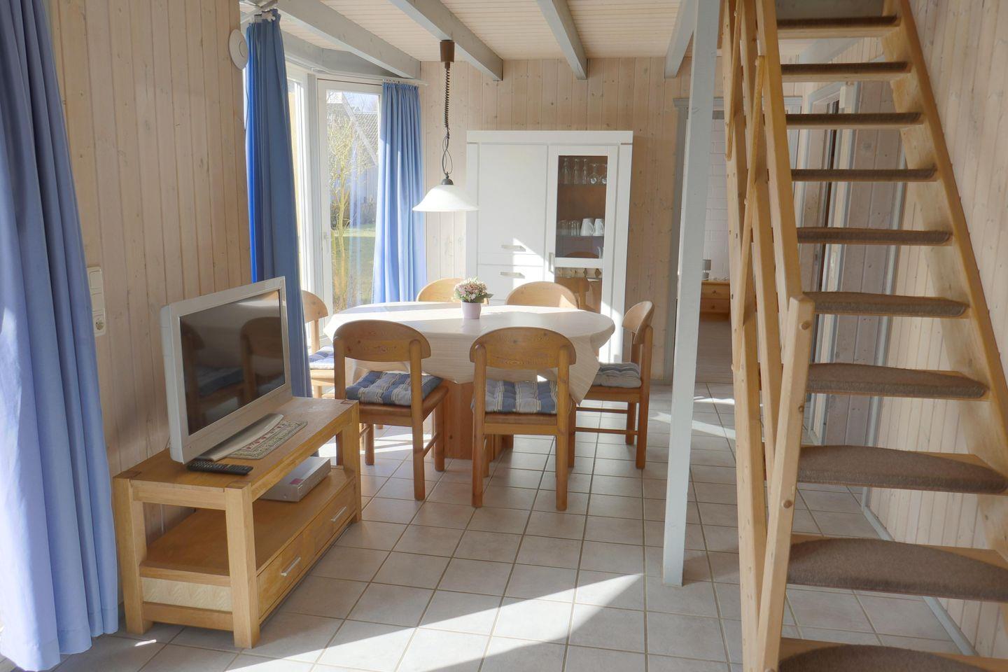 Das Ferienhaus im skandinavischen Stil bietet Platz für bis zu 6 Personen auf 2 Etagen mit 2 Schlafzimmern und offener Schlafgalerie, Wohn-/Essbereich, Einbauküche, Sauna, Terrasse, Abstellraum und Pkw-Stellplatz. Energiekosten werden nach Verbrauch abgerechnet.