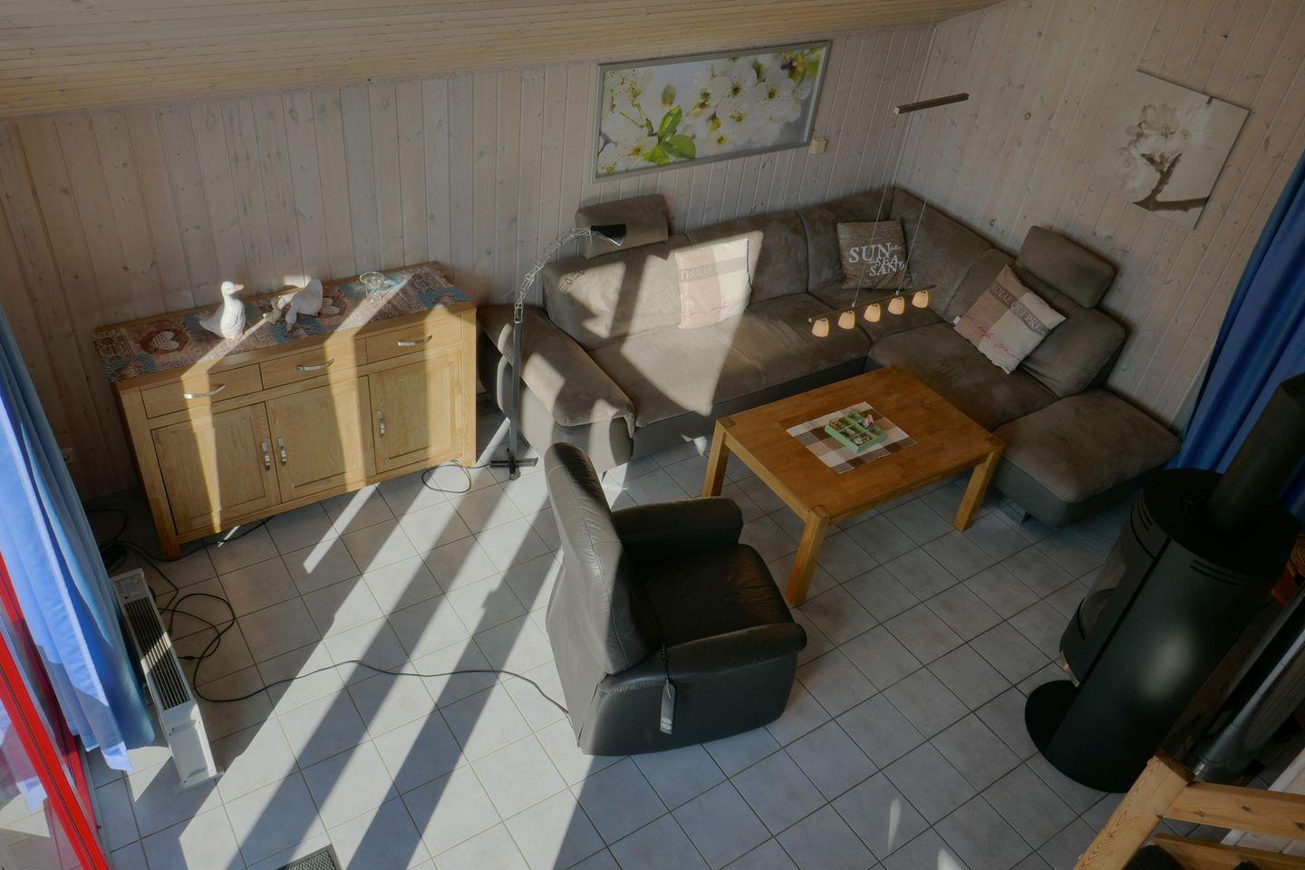 Das Ferienhaus im skandinavischen Stil bietet Platz für bis zu 6 Personen auf 2 Etagen mit 2 Schlafzimmern und offener Schlafgalerie, Wohn-/Essbereich, Einbauküche, Sauna, Terrasse, Abstellraum und Pkw-Stellplatz. Energiekosten werden nach Verbrauch abgerechnet.