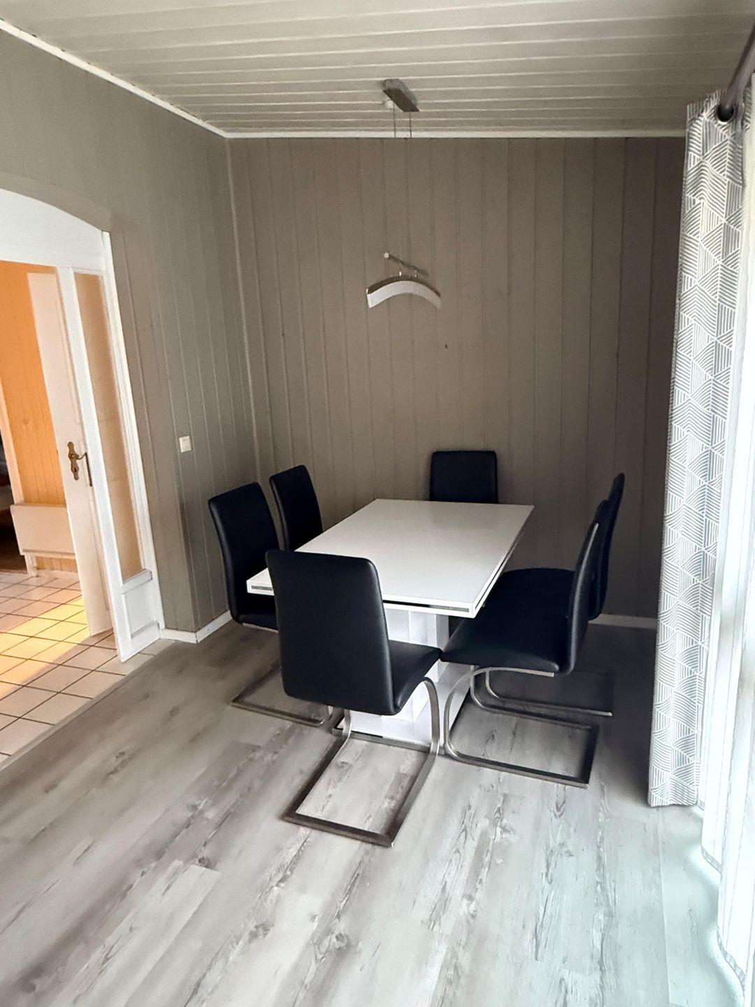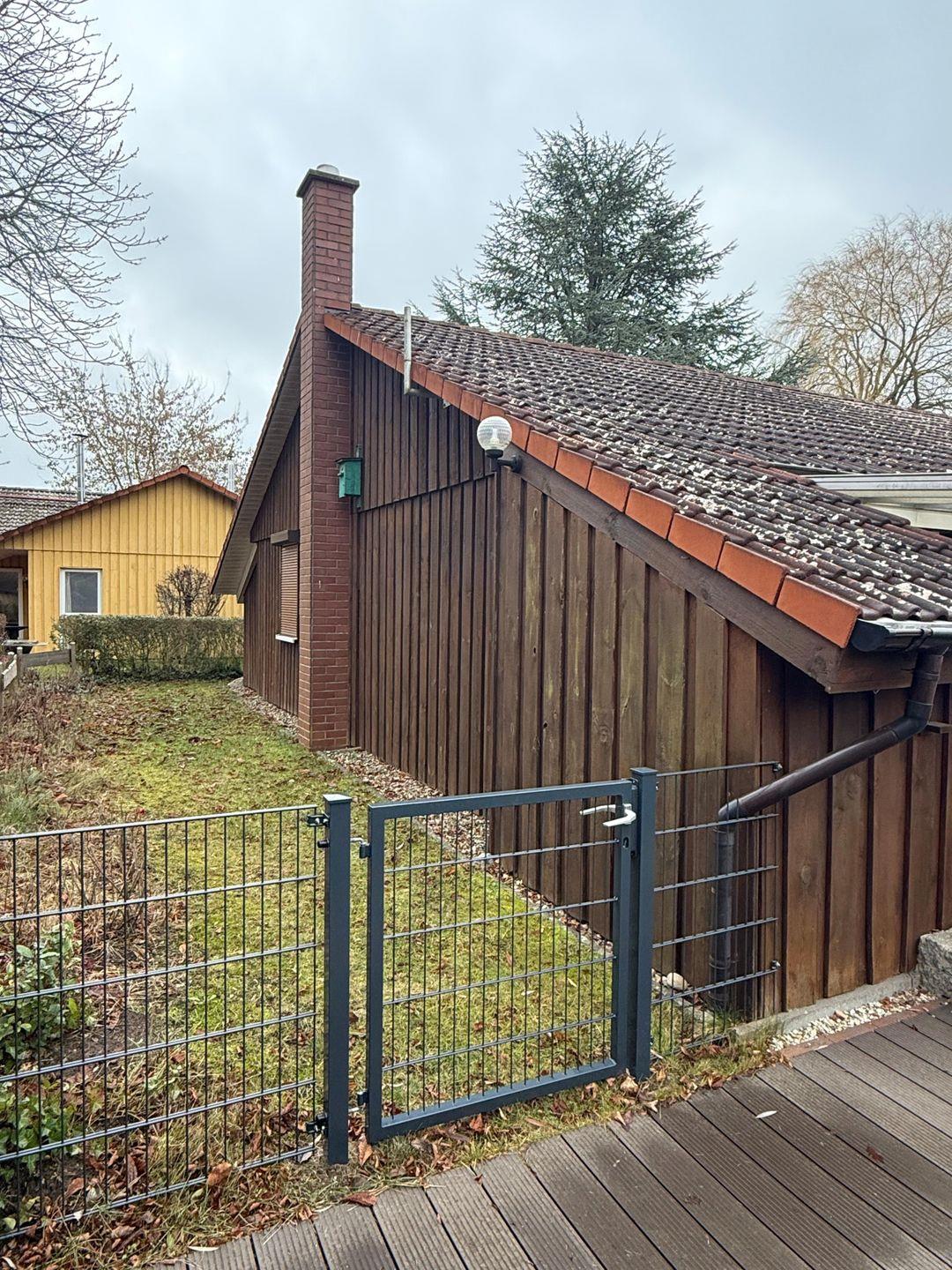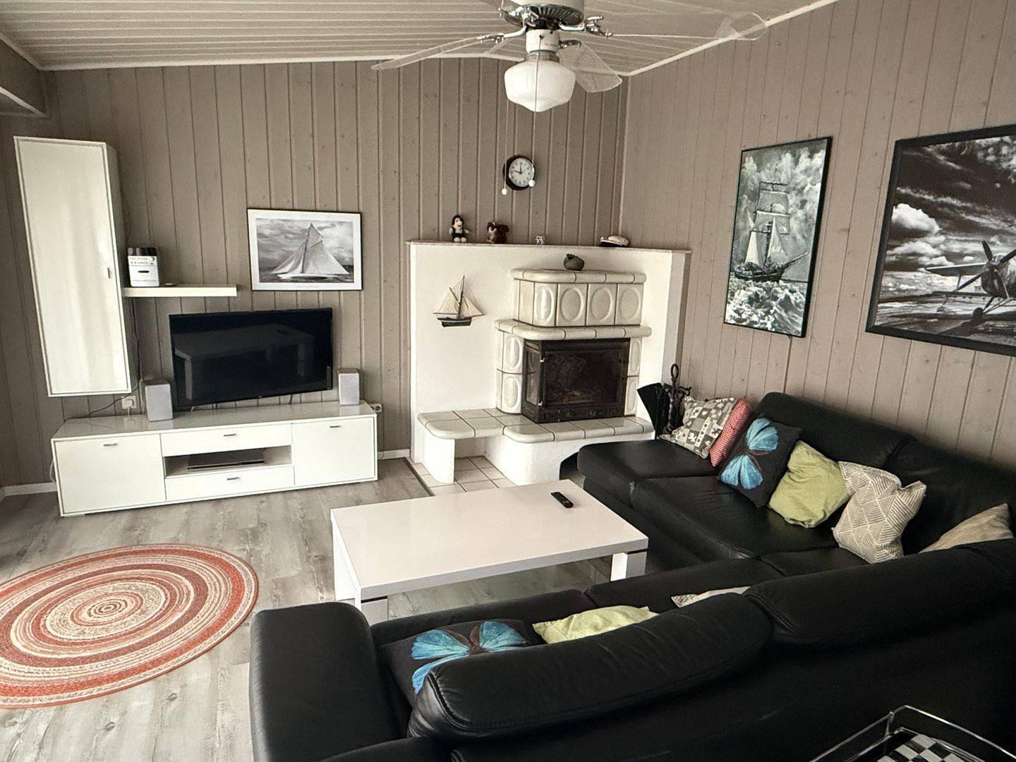 Die Doppelhaushälfte im skandinavischen Stiel bietet Platz für bis zu 4 Personen auf einer Etage mit 2 Schlafzimmern, 1 Badezimmer, Wohn-/Essbereich mit Kamin und Einbauküche, Abstellraum, Terrasse und PKW-Stellplatz.