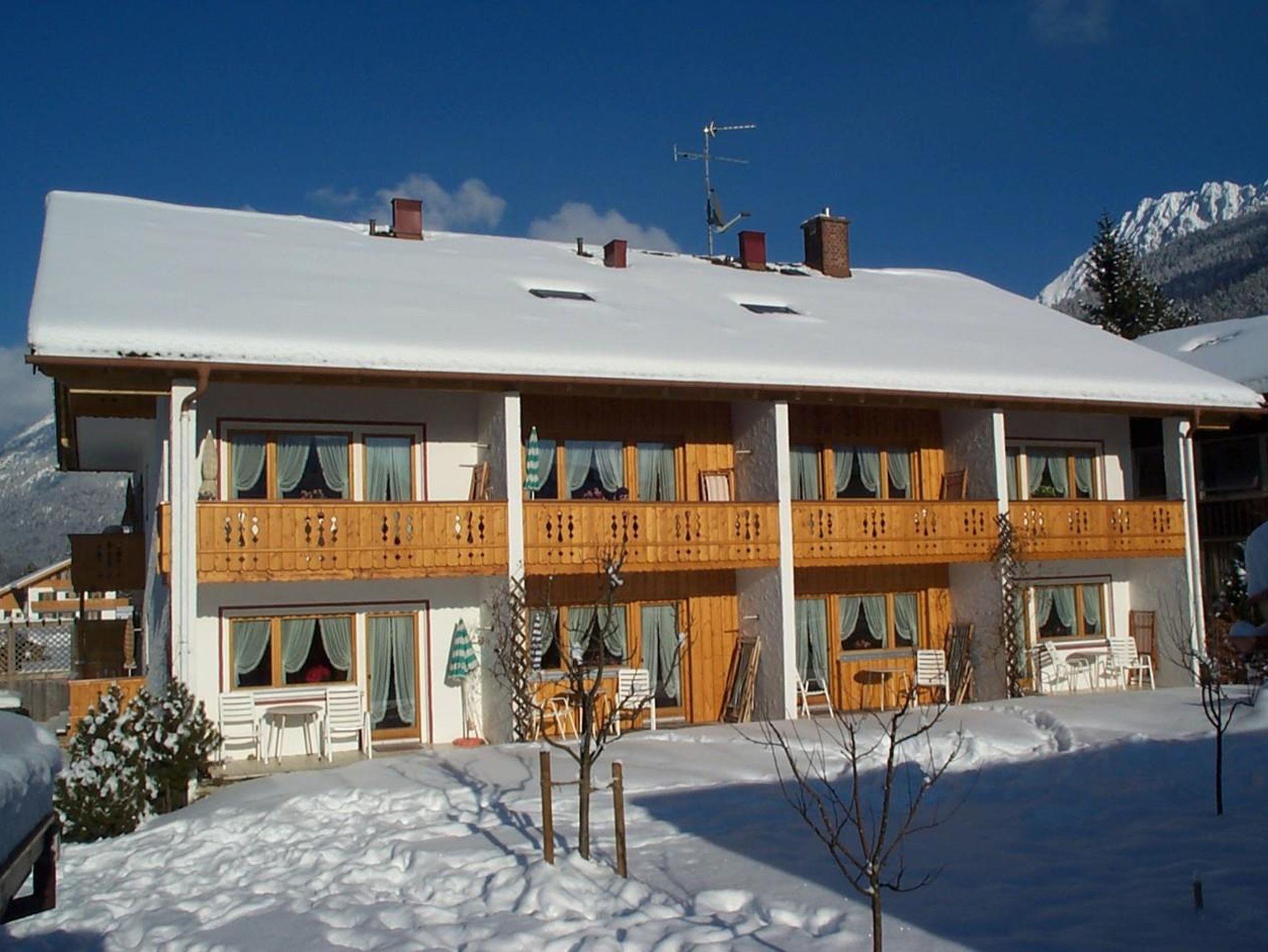 Genießen Sie den herrlichen Bergblick auf unser wunderschönes Karwendel- und Wettersteingebirge von der Südterrasse Ihrer gemütlichen Ferienwohnung mit 30m². Wohn-Schlafzimmer mit Schrankbetten (normale Betten, tagsüber im Schrank, brauchen abends nur ausgeklappt werden), bequeme Sitzgruppe und Essecke, SAT-TV, Radio, Telefon; sep. Küche mit Kochplatten, Mikrowelle auf Wunsch, Kühlschrank mit Gefrierfach, Kaffeemaschine, Wasserkocher und kompl. Geschirr; Dusche/ WC, Fön; Terrasse mit Sonnenschirm und Gartenmöbeln; Bettwäsche, Handtücher, Tischdecken und Geschirrtücher vorhanden