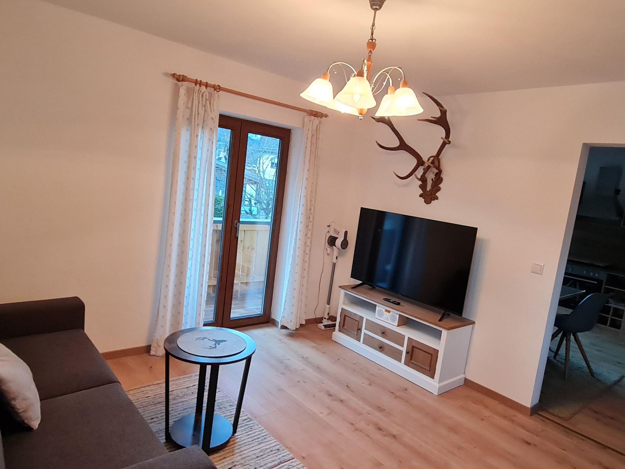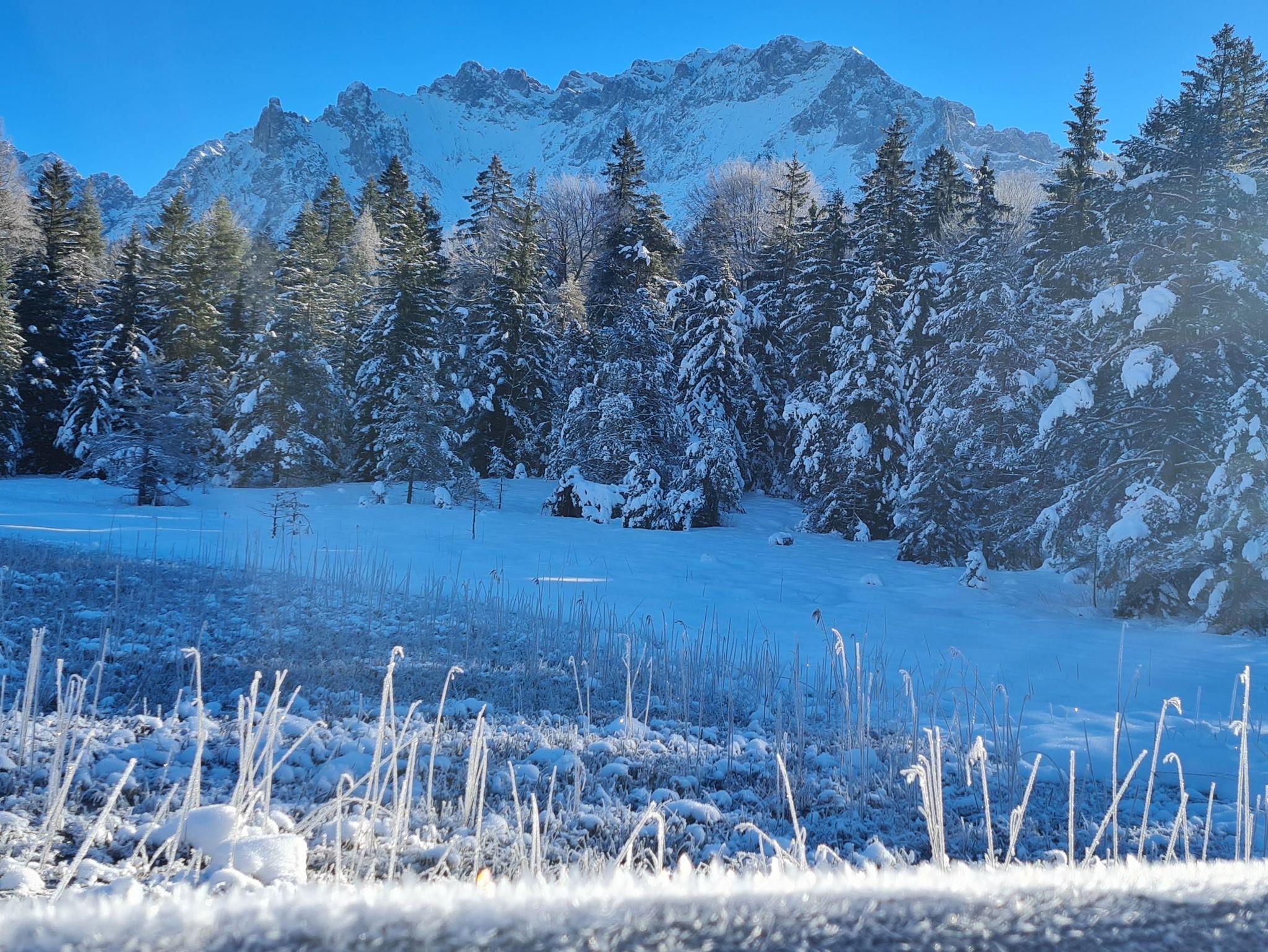 Im 1 Stock befindet sich unsre 60qm große Wohnung für bis zu 4 (3Erwachsene oder 2Erwachsene und 2 Kinder )Personen mit großem Balkon und wunderschönen Blick zum Karwendel .