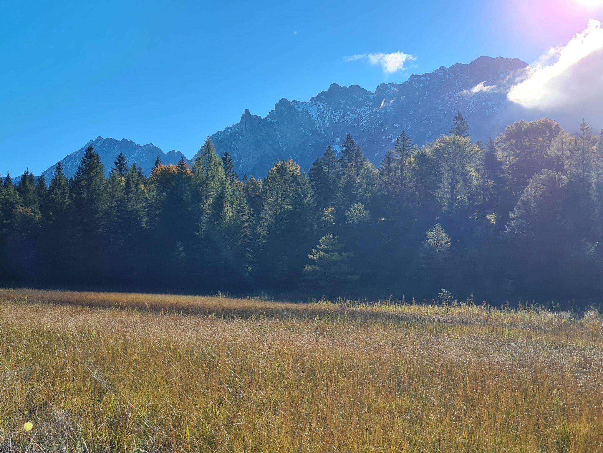 Erleben Sie Mittenwald Genießen Sie die harmonische Ruhe im Haus Posaunenklang, wo die malerische Alpenlandschaft direkt vor Ihrer Tür liegt. Eingebettet in die atemberaubende Natur, ist unser Haus der perfekte Rückzugsort für Familien und Naturliebhaber. Der ruhige Standort ermöglicht es Ihnen, die frische Bergluft zu atmen und entspannende Momente auf dem Balkon zu verbringen, ausgestattet mit Balkonmöbeln und Sonnenschirmen.