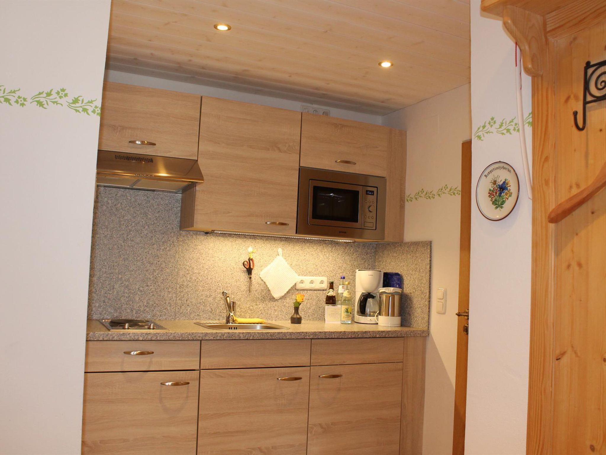 Genießen Sie den herrlichen Bergblick auf unser wunderschönes Karwendel- und Wettersteingebirge von der Südterrasse Ihrer gemütlichen Ferienwohnung mit 30m². Wohn-Schlafzimmer mit Schrankbetten (normale Betten, tagsüber im Schrank, brauchen abends nur ausgeklappt werden), bequeme Sitzgruppe und Essecke, SAT-TV, Radio, Telefon; sep. Küche mit Kochplatten, Mikrowelle auf Wunsch, Kühlschrank mit Gefrierfach, Kaffeemaschine, Wasserkocher und kompl. Geschirr; Dusche/ WC, Fön; Terrasse mit Sonnenschirm und Gartenmöbeln; Bettwäsche, Handtücher, Tischdecken und Geschirrtücher vorhanden