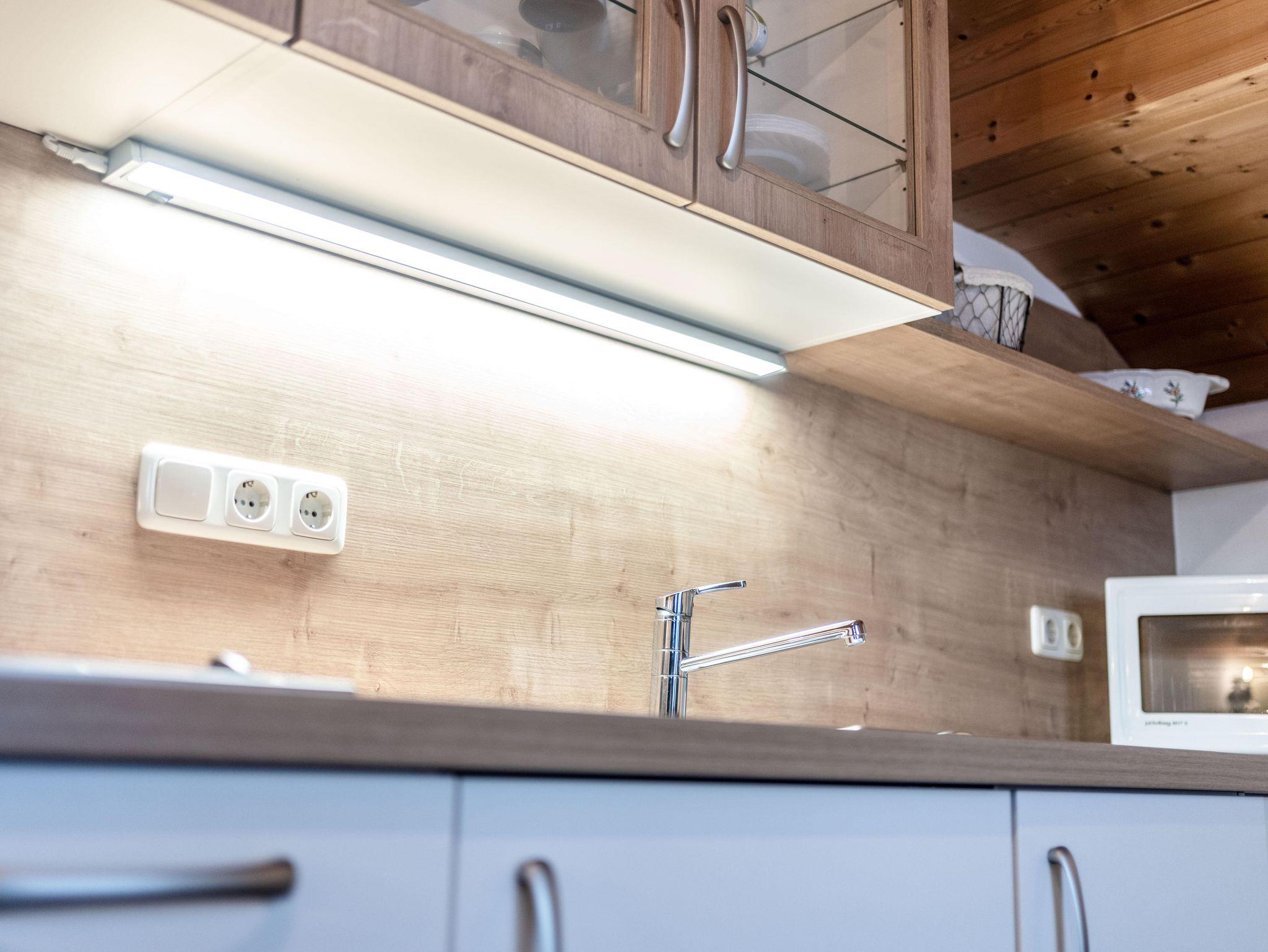 Die Küche neu ist ausgestattet mit einer gemütlichen bayerischen Eckbank, Mikrowelle und einem 2-Platten-Cerankochfeld.