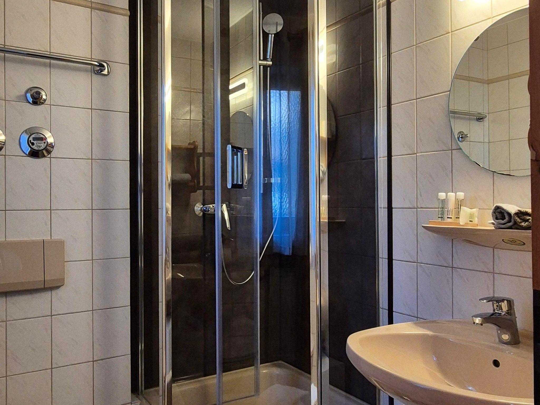 Das Bad - Bestehend aus Dusche, WC und Waschbecken mit Spiegel.