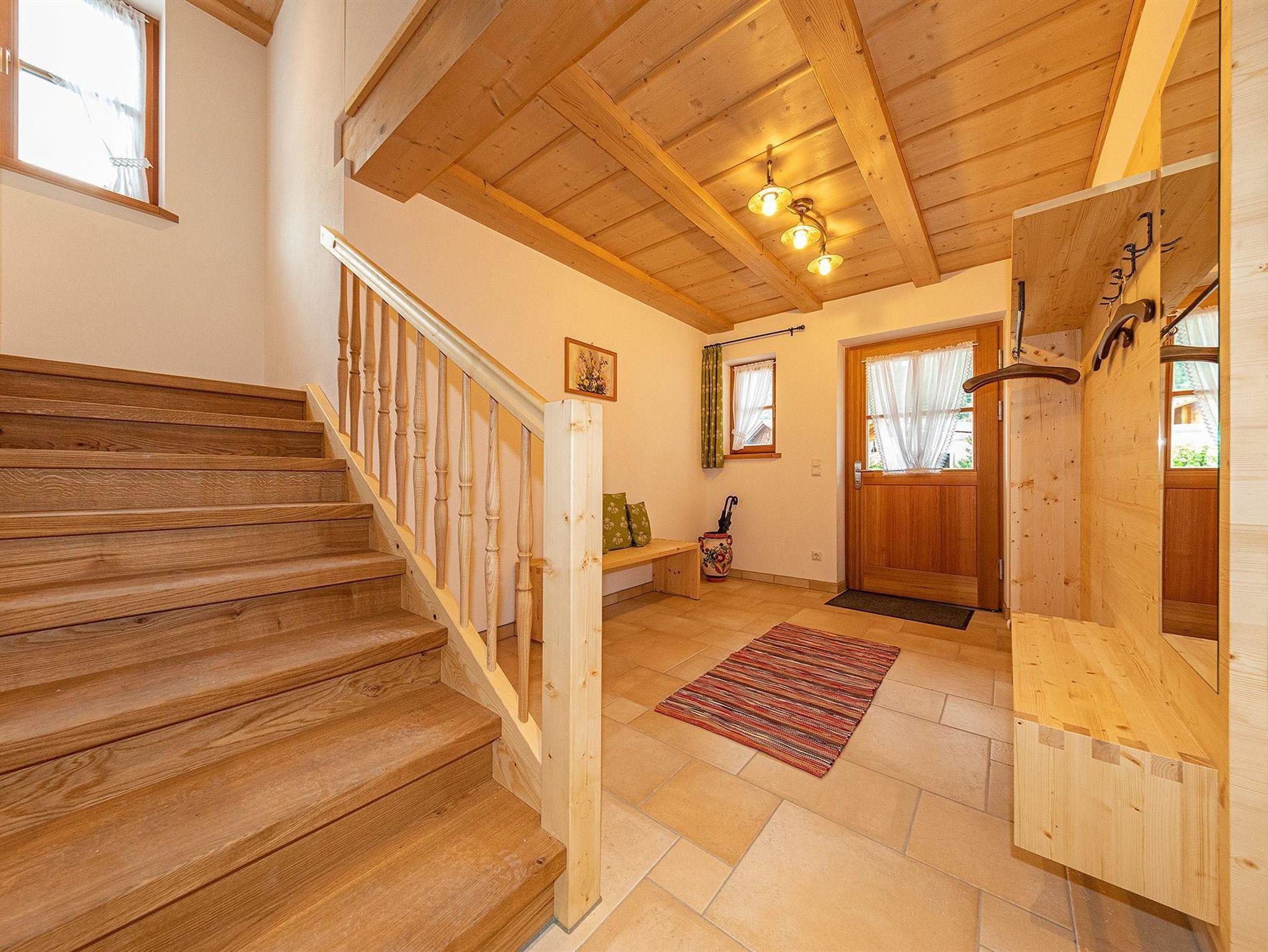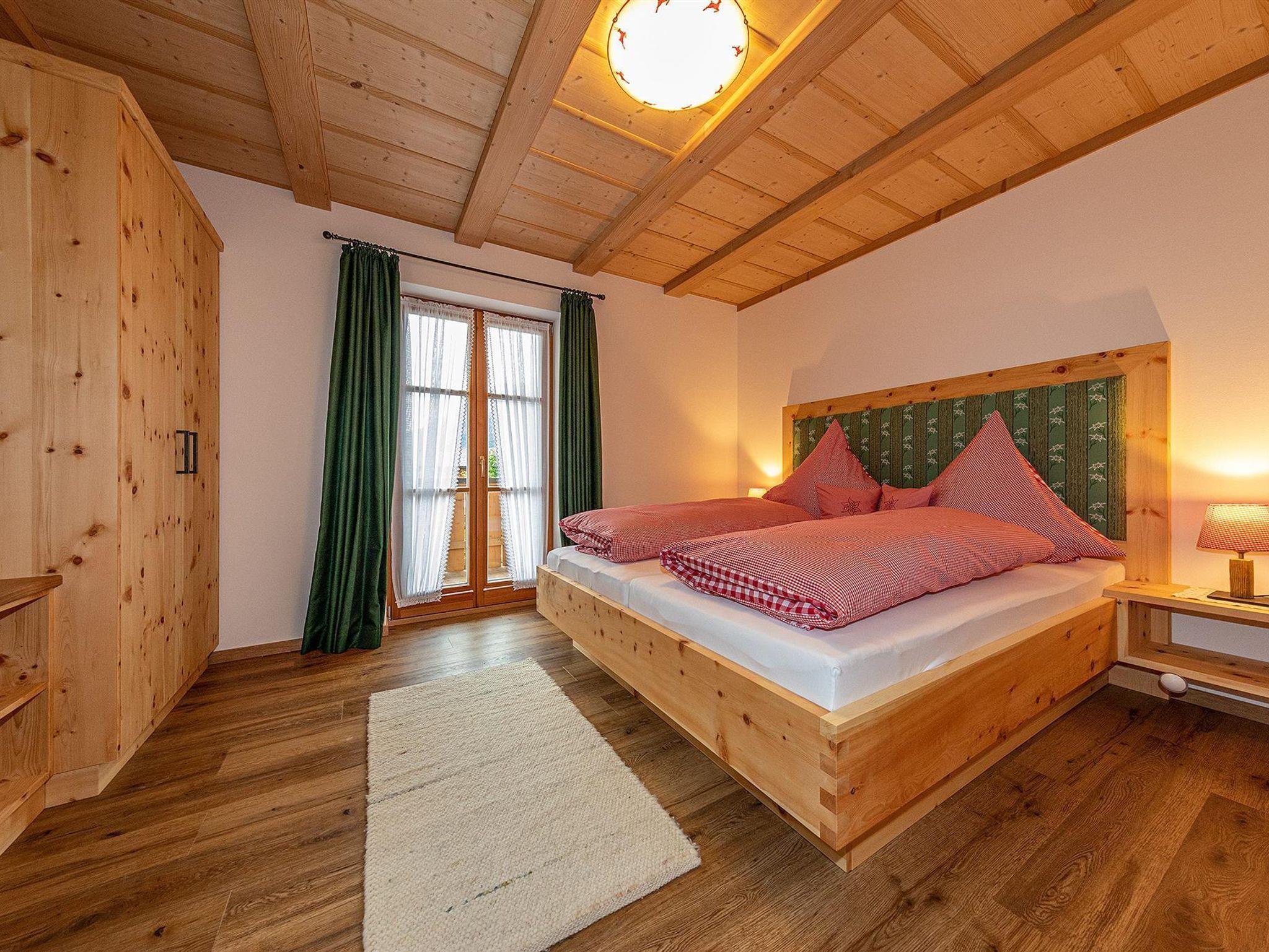 Um Ihren Aufenthalt so angenehm wie möglich zu gestalten, ist die Haushälfte 4erspitzblick (Süd–Ost) mit seinem Eingangsbereich /Flur mit einer Garderobe eingerichtet. Auch ein Tages –WC und Wirtschaftsfraum (WM +TR) befindet sich im EG. Die Komfort-Küche mit Essecke ist komplett eingerichtet und ausgestattet. Der Wohnbereich bietet mit Couchen und Sessel viel Platz für gemütliche Abende. Von beiden Räumen können Sie die möblierte Südterrasse betreten. Im 1.OG finden Sie ihre drei Schlafzimmer welche aus Zirbenholz handgemacht sind. Von allen Schlafzimmern (2 Doppelschlafzimmer und einem Schlafzimmer mit Etagenbett (2 Betten 90x200 cm) haben Sie Zutritt auf die Balkone. Das großzügige Familienbad hat neben der ebenerdigen Relaxdusche , WC, BIDET, Handtuchwärmekörper und einen großen Waschtisch und Fön viel Platz für Sie. Für höchste Sauberkeit ist die gesamte Wohnung nur mit Holz- und Steinböden ausgestattet und somit für Allergiker geeignet.