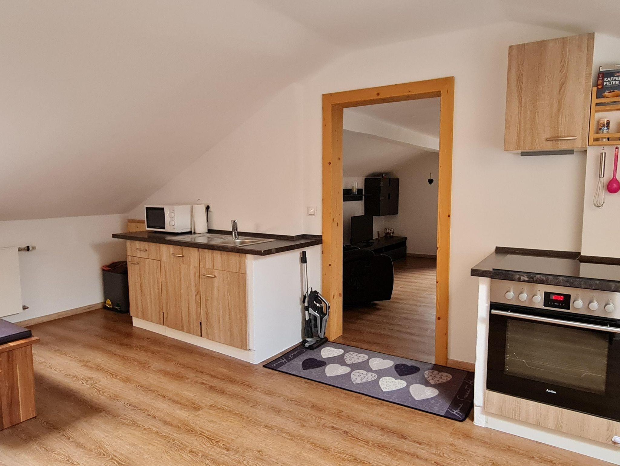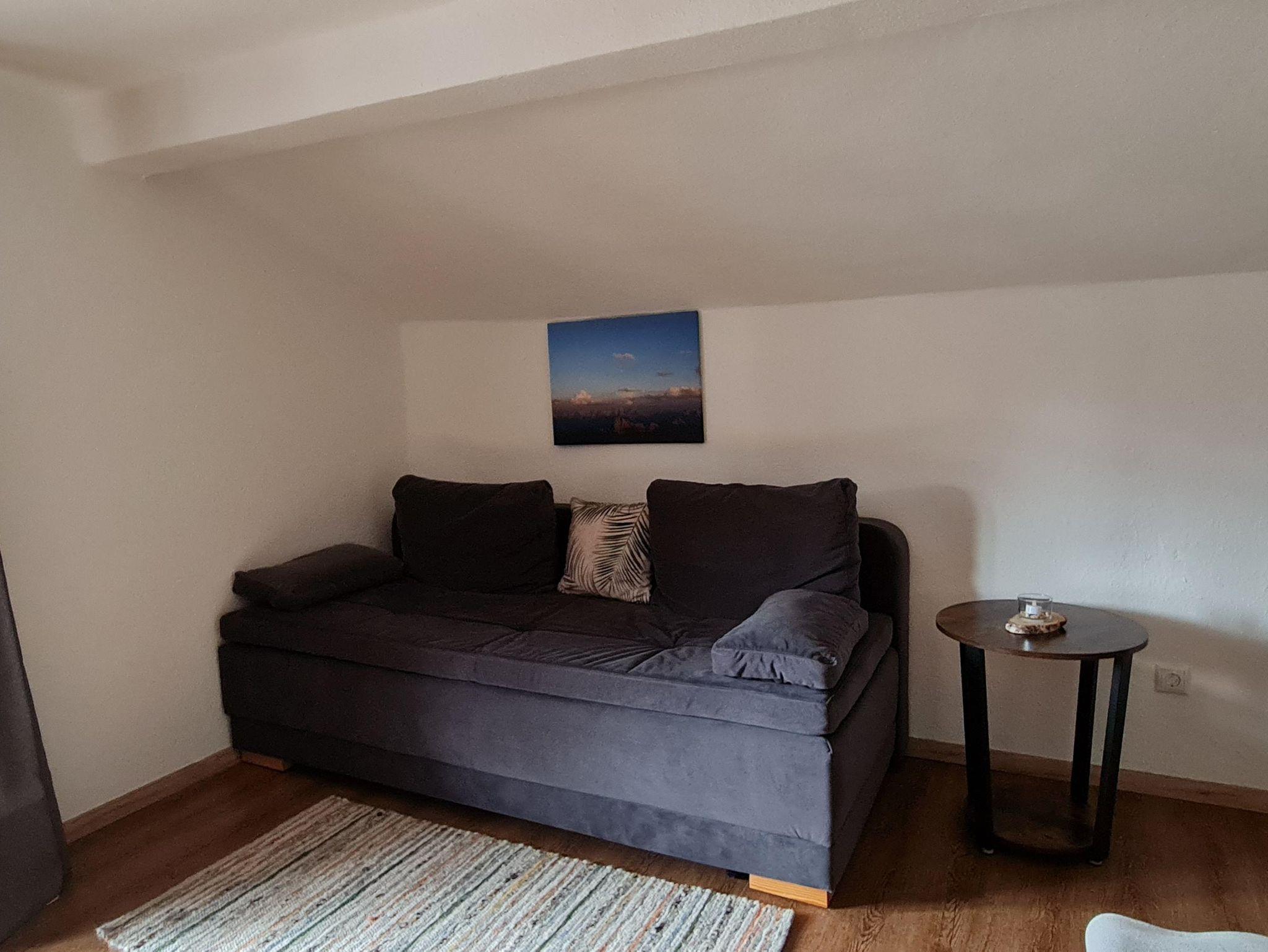 Im 2 Stock befindet sich unsere 50qm große Wohnungmit Balkon geräumiger Küche, Spühlmaschiene Wasserkocher, Kaffeemaschine und allem nötigen was Sie im Urlaub benötigen , das Schlafzimmer ist separat, im Wohnzimmer befindet sich ein TV sowie eine Schlafcouch für 1 Personen