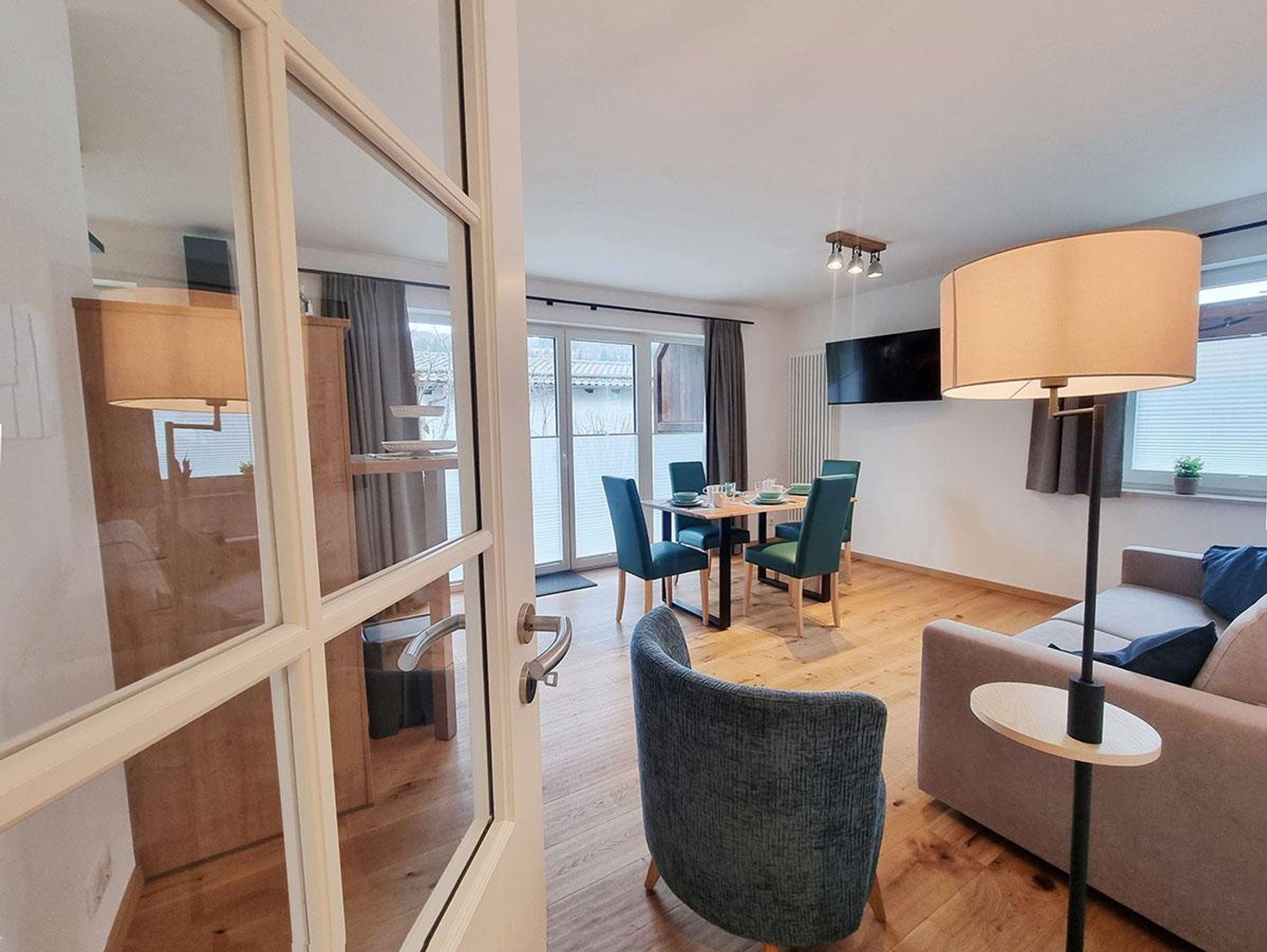 Unsere barrierefreie Ferienwohnung (ca. 52 m²) im Erdgeschoss bietet Platz für 2-4 Personen und ist der perfekte Rückzugsort für einen entspannten Urlaub in den bayerischen Alpen. Sie liegt in zentraler Lage (Rahnstrasse 7) und bietet eine eigene Gartenterrasse, auf der Sie die frische Bergluft genießen können.