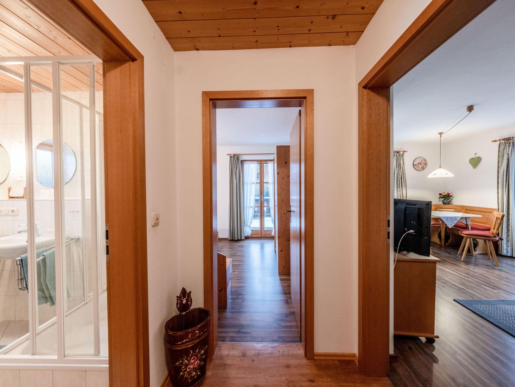 Die Wohnung Edelweiß mit ihren 46 qm befindet sich im 1. Stock. Mit 2 separaten Schlafzimmern ist genügend Platz für 4 Personen und es könnte noch ein Kinderbett problemlos zugestellt werden.