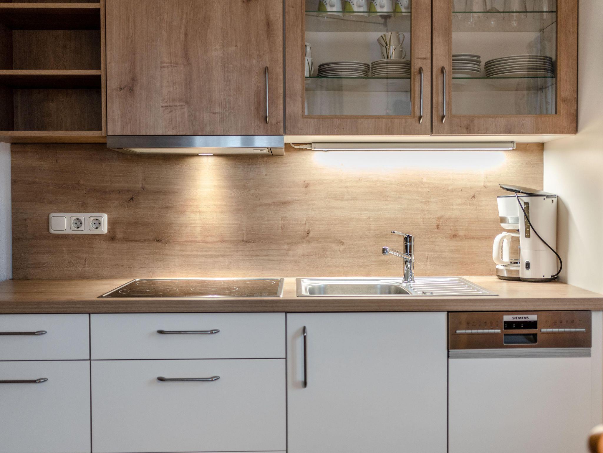 Die Wohnküche ist ausgestattet mit einer Küchenzeile neu, 4-Platten-Cerankochfeld, Mikrowelle, Geschirrspüler. Gemütlicher bayerischer Eckbank, Couchecke neu mit Flachbildschirm, Kabel-TV, CD-Player, Radio. Das Bad mit 2 Waschbecken und Dusche/WC.