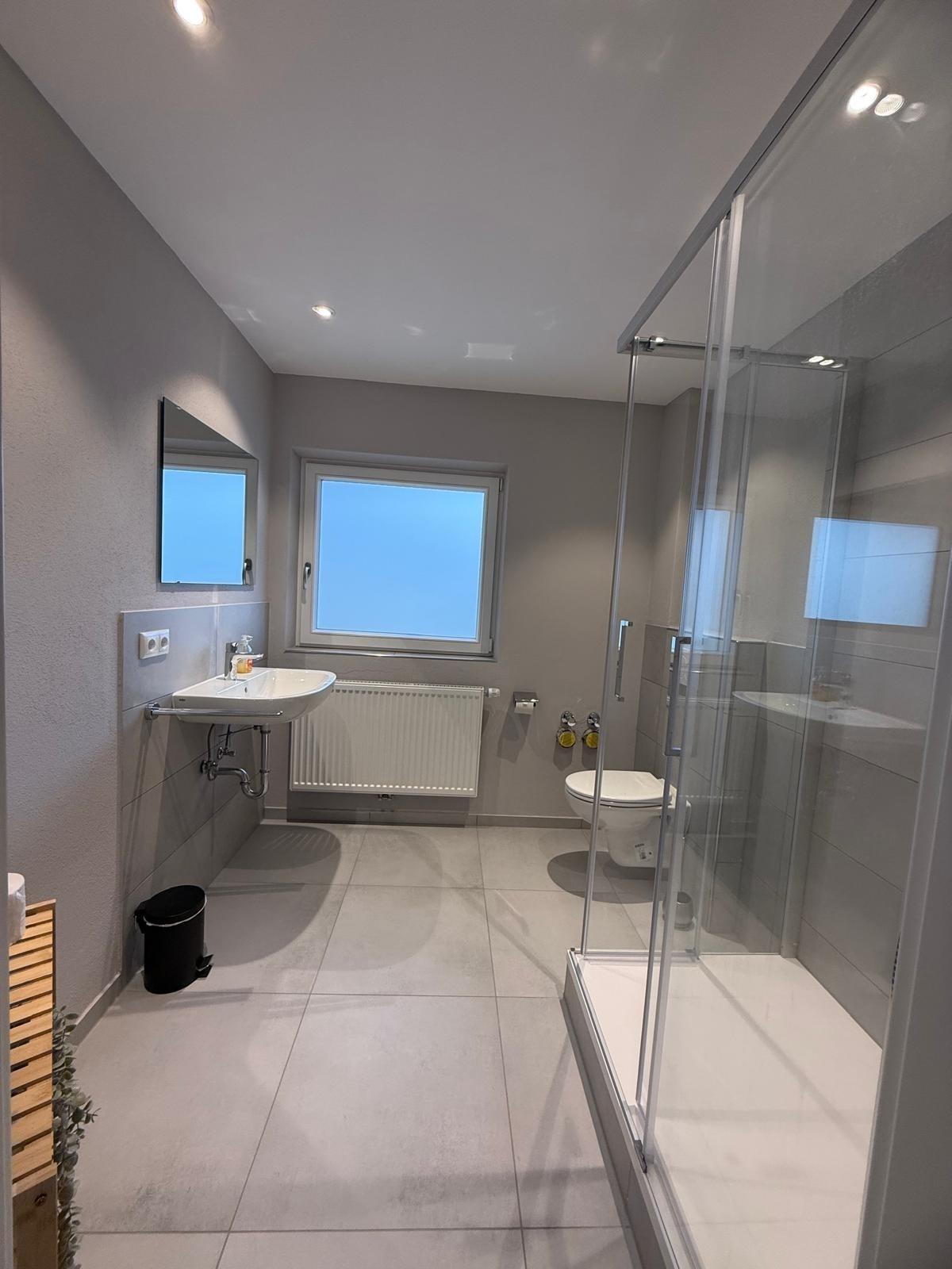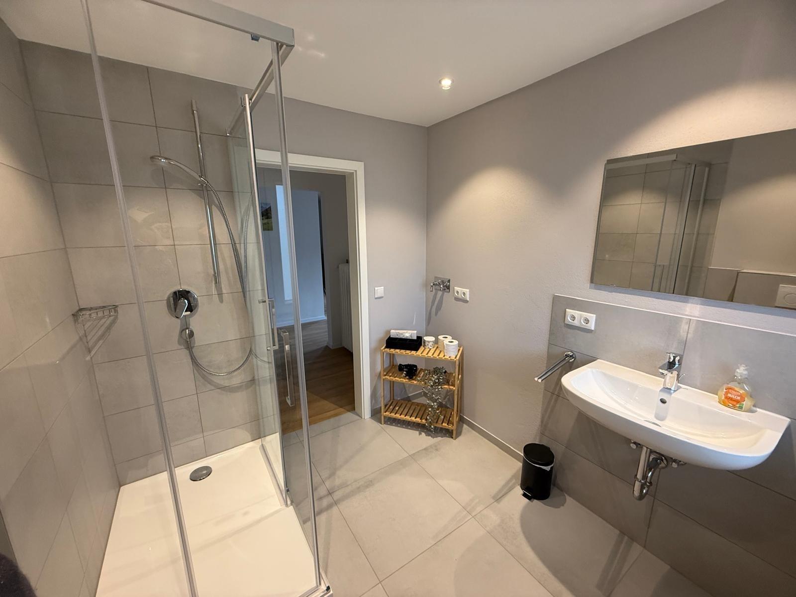 Großzügiges Badezimmer mit moderner Dusche - perfekt für entspannte Momente