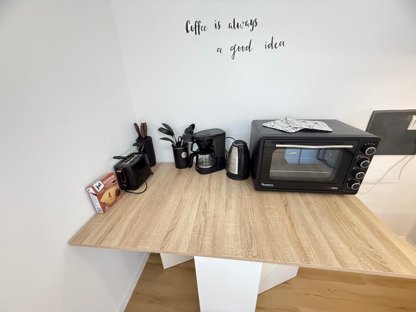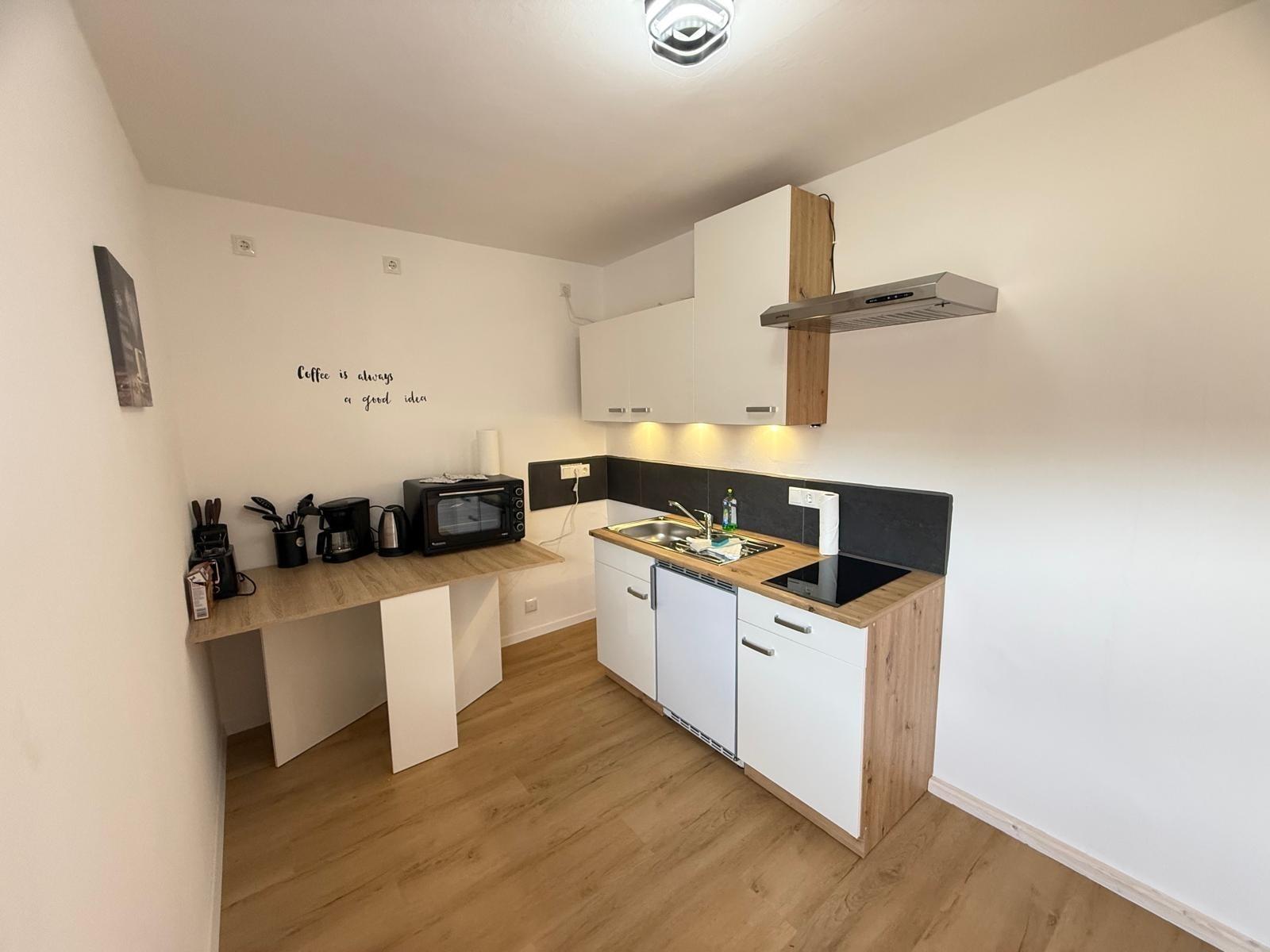 Moderne Küche mit allem, was Sie brauchen - inklusive Minibackofen mit ALLEN Funktionen eines klassischen Backofens.