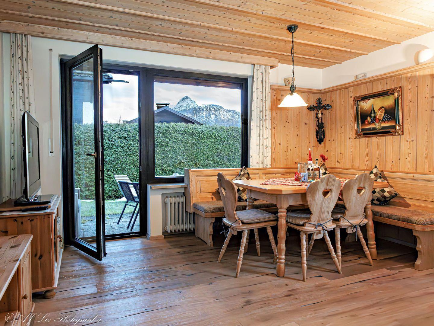 Ein besonderes Highlight der Fewo Isartraum ist die großzügige Terrasse, die Ihnen einen optimalen Zugang zum Garten bietet. Hier können Sie ungestört die frische Bergluft genießen und unter den bereitgestellten Gartenmöbeln eine Tasse Kaffee oder ein Glas Wein in der Sonne verbringen. Der Garten ist ideal für Kinder, um zu spielen und die Natur zu erkunden. Sie können von hier aus auch den Blick auf die beeindruckenden Berge genießen, die Mittenwald umgeben.