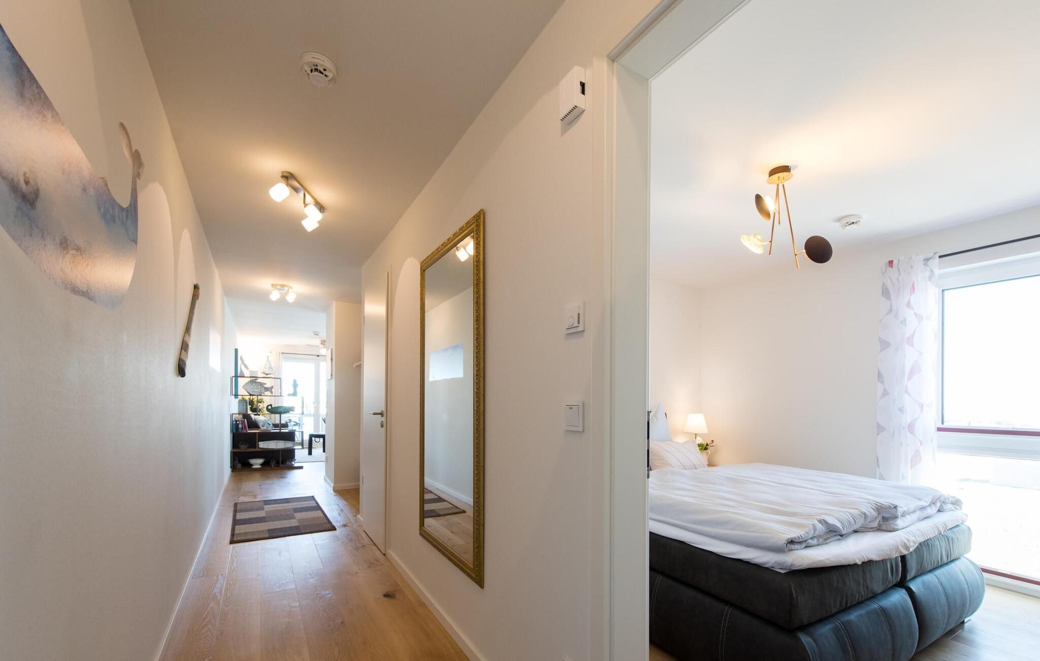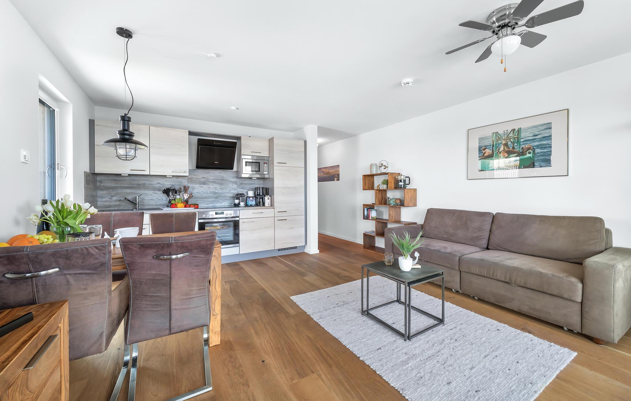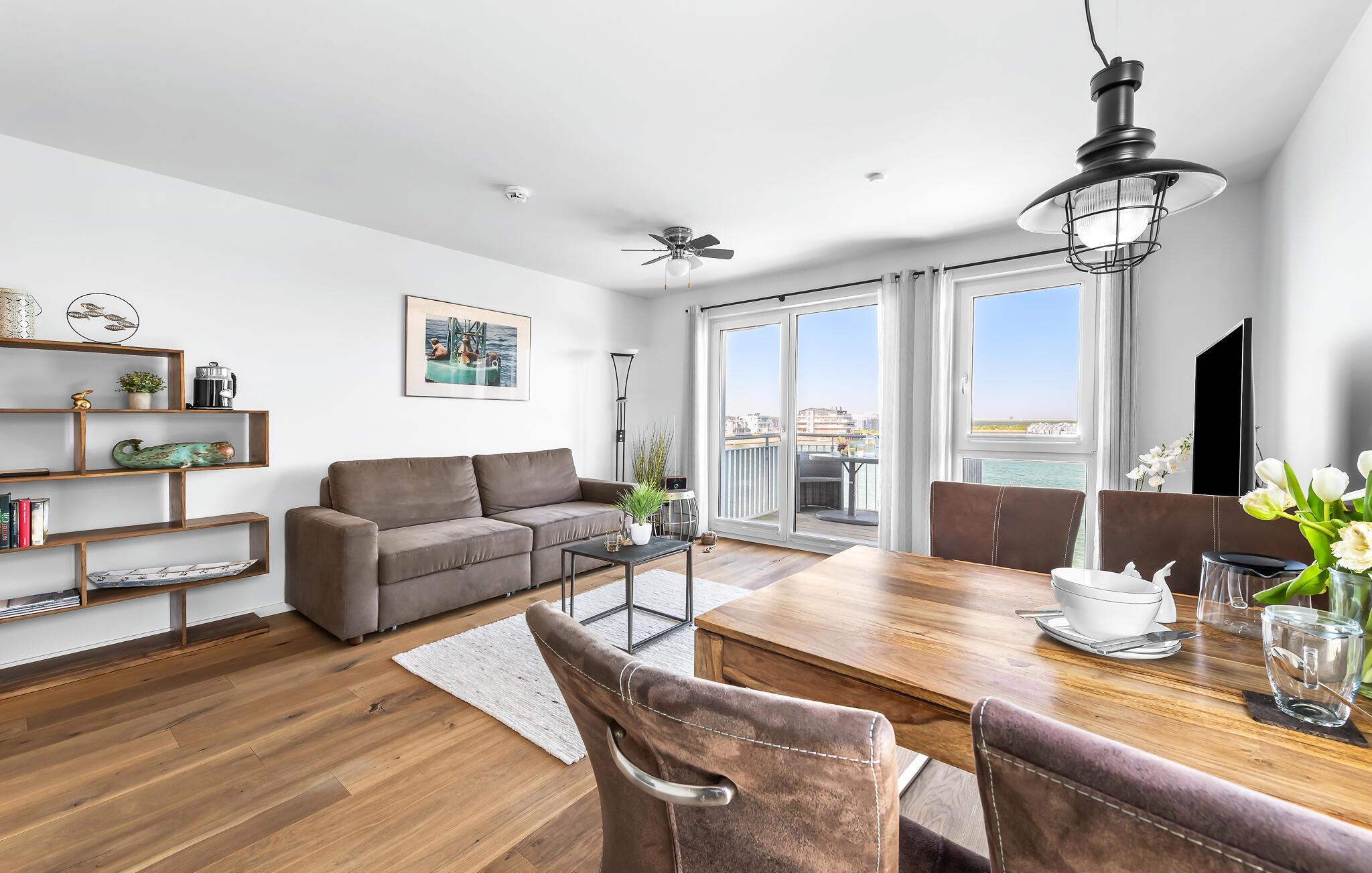 Beliggende direkte på havnepromenaden i feriestedet Olpenitz ved Østersøen, byder denne lyse ferielejlighed velkommen til børn på 10 år og derover. Den scorer med sine gulv til loft-vinduer med en fænomenal udsigt over sejl- og lystbådehavnen, de flydende huse og østersøfjorden Slien. En havnebiograf er garanteret, ligesom de billedskønne solnedgange, der kan iagttages fra balkonen. Denne ferielejlighed er designet til at være fri for barrierer, og den kan nemt nås med elevator og har en bruser i gulvniveau. Placeret over alt kan sejlskibe, der passerer ved indsejlingen til Østersøen, observeres fra hele opholds-/spiseområdet og balkonen. Udsigten falder på Schimmelünde fyrtårn og idyllen i landskabsbeskyttelsesområdet omkring det. Havnepromenaden ligger lige under ferielejligheden og er ideel til slentreture. Telekoms hjemmeunderholdningsprogram på fladskærms-tv'et i stuen samt bøger og brætspil tilbyder ekstra underholdning. Det omfattende udstyret åbne køkken lader intet tilbage at ønske. Her kan man fremtrylle lækre feriemåltider. Bruserummet har et stort brusebad på gulvniveau. Lejlighedens hjørneplacering tilbyder også dette værelse bekvemmeligheden af et udvendigt vindue med udsigt over promenaden. Det hyggelige soveværelse, udstyret med en dobbeltseng, tilbyder en afslappende feriesøvn. Tidlig stående kan se fantastiske solopgange gennem vinduet. Et andet sted at sove er tilgængeligt på den komfortable sovesofa i opholdsstuen. Der er en privat parkeringsplads bag huset. Det er en ferielejlighed i hjørnebeliggenhed på anden sal. Vores favoritsted: Sæt fødderne op på terrassen med en solnedgang og se havnebiografen. Ferie! Bemærk venligst, at OstseeResort Olpenitz stadig er under opførelse på grund af stor efterspørgsel. Ikke desto mindre opfylder ejendommene allerede en 5-stjernet standard og tilbyder jer et førsteklasses ophold. Ethvert byggearbejde på resortet vil ikke påvirke jeres ferienydelse, hvorfor yderligere rabatter er udelukket.