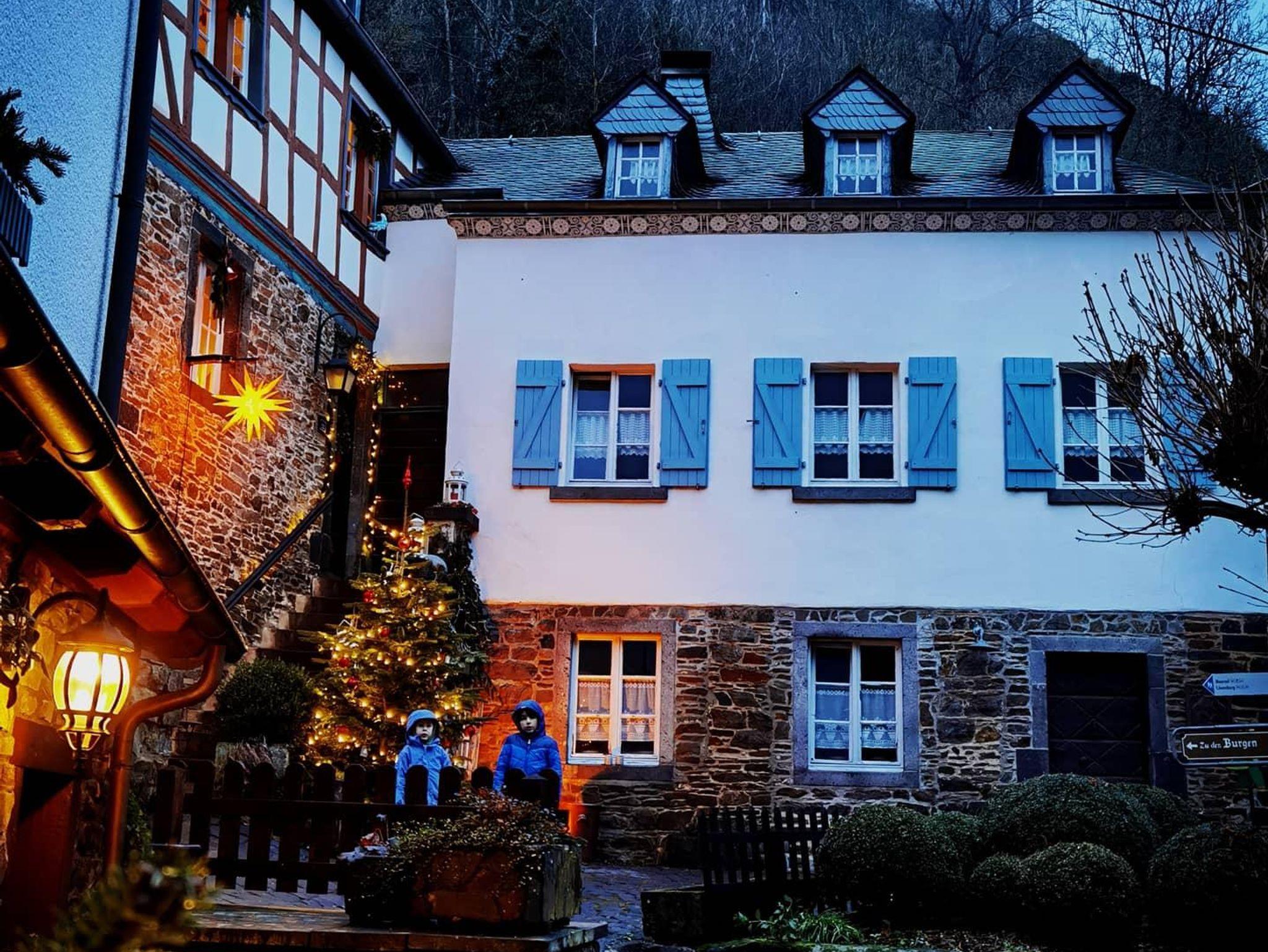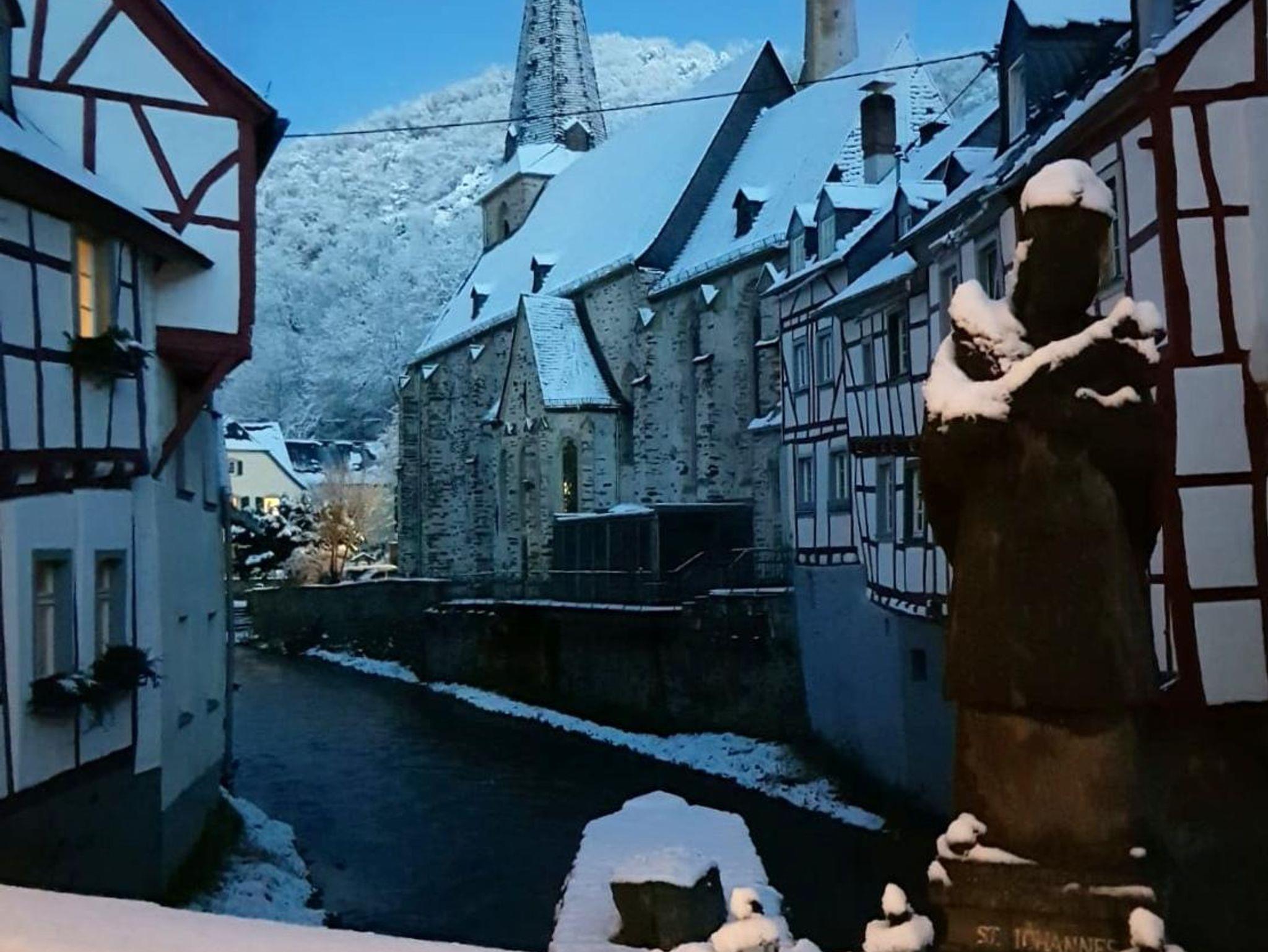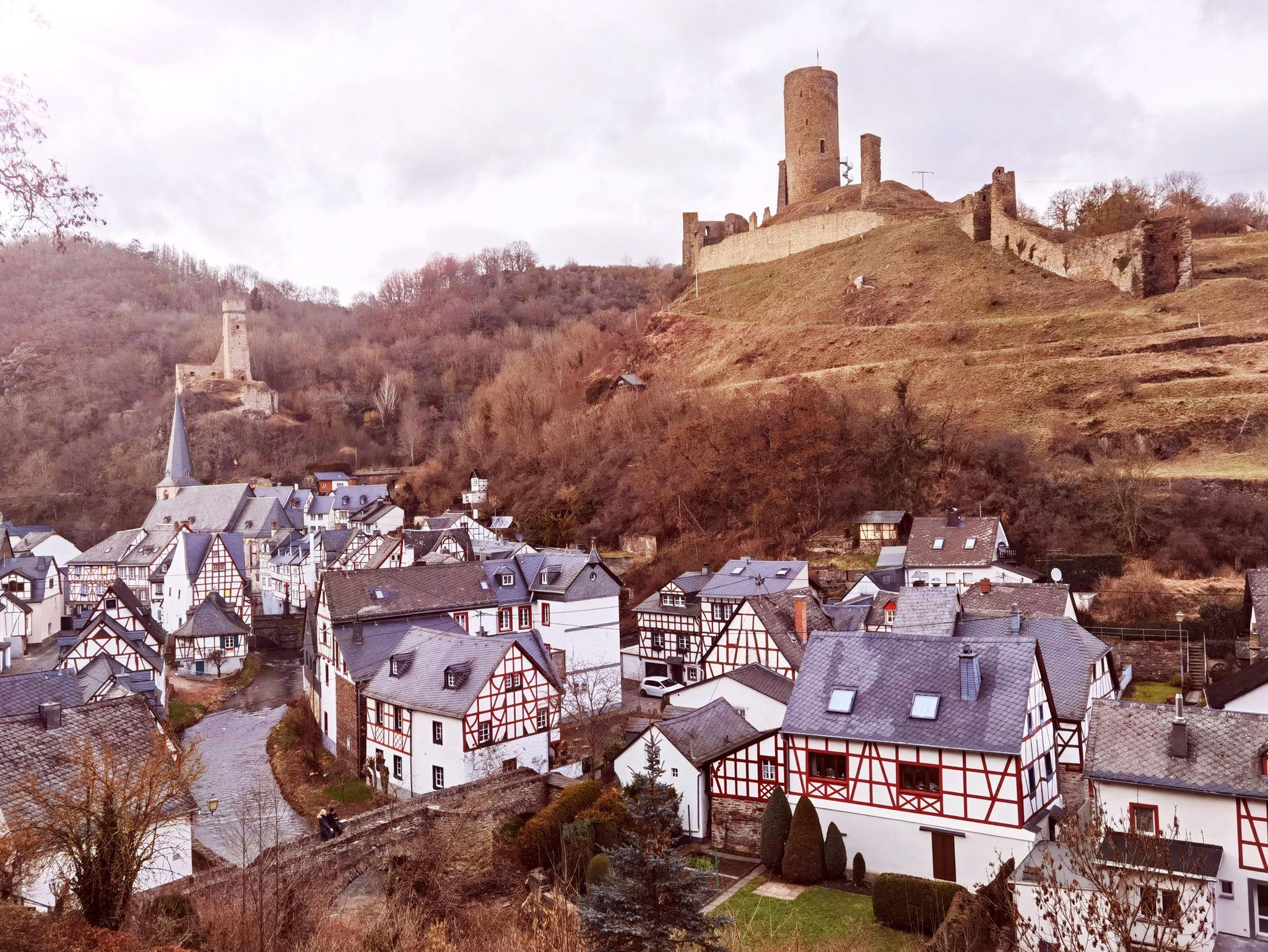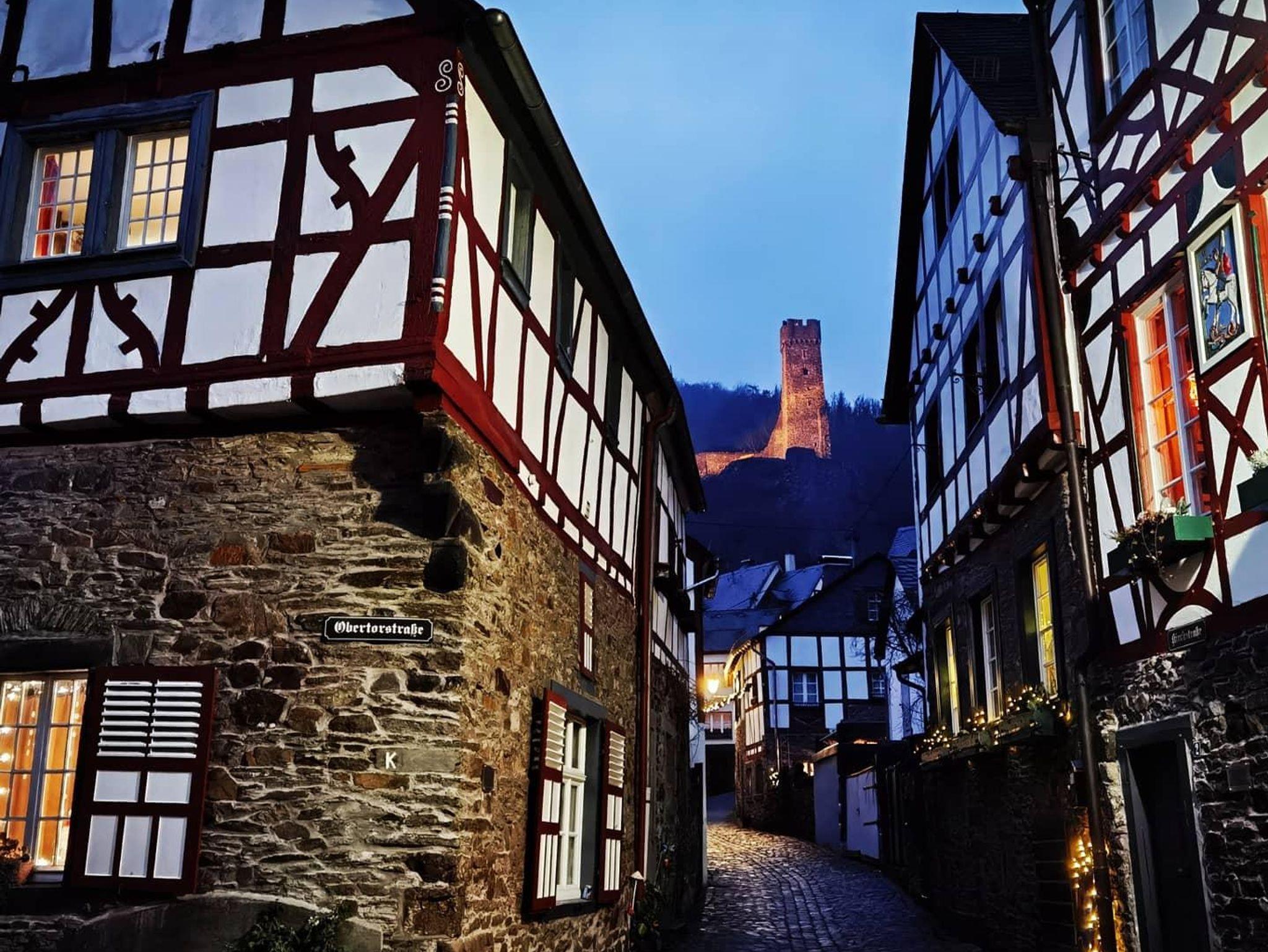 Unser Haus ist ca. 250 m vom historischen Ortskern Monreals, mit seinen schönen Fachwerkhäusern, die am Bachlauf der Elz eine herrliche Kulisse bieten, der spätgotischen Kirche und den mittelalterlichen Steinbrücken, entfernt. Die beiden Burgen (Phillips- und Löwenburg, die auch bestiegen werden kann) sind weithin sichtbar und thronen hoch über dem alten Ortskern.