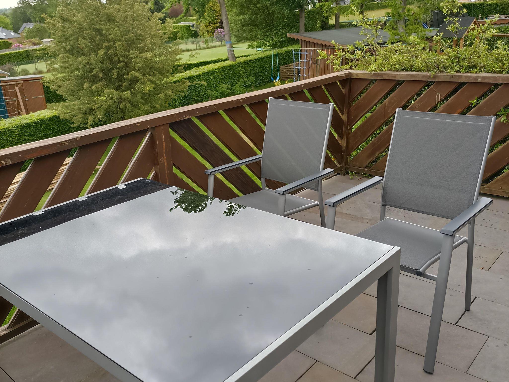 Die Ferienwohnung ist circa 85 m² groß und besteht aus Küche, Wohn/Esszimmer, Schlafzimmer, Bad und einem separatem WC. Zur Wohnung gehört zusätzlich eine ungefähr 20 m² große Terrasse. Die Wohnung wurde bis vor kurzer Zeit von uns selbst bewohnt. Wir haben früher sehr viel Holz verbaut, das Badezimmer und das separate WC wurden vor acht Jahren generalsaniert.