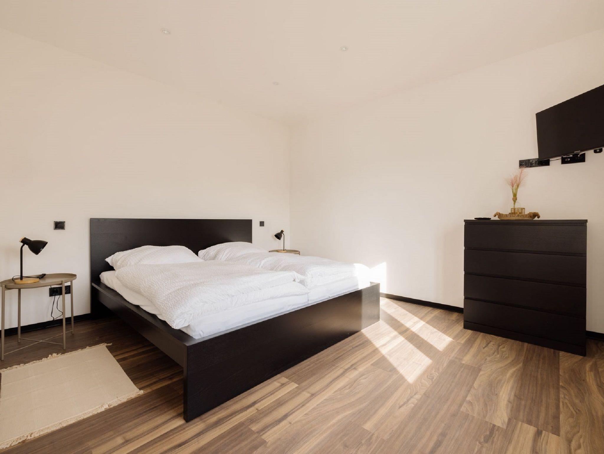 Es stehen Ihnen 2 Schlafzimmer mit je einem Doppelbett und TV zur Verfügung. Die Wohnung ist mit einem modernen Wohn-/Essbereich ausgestattet.