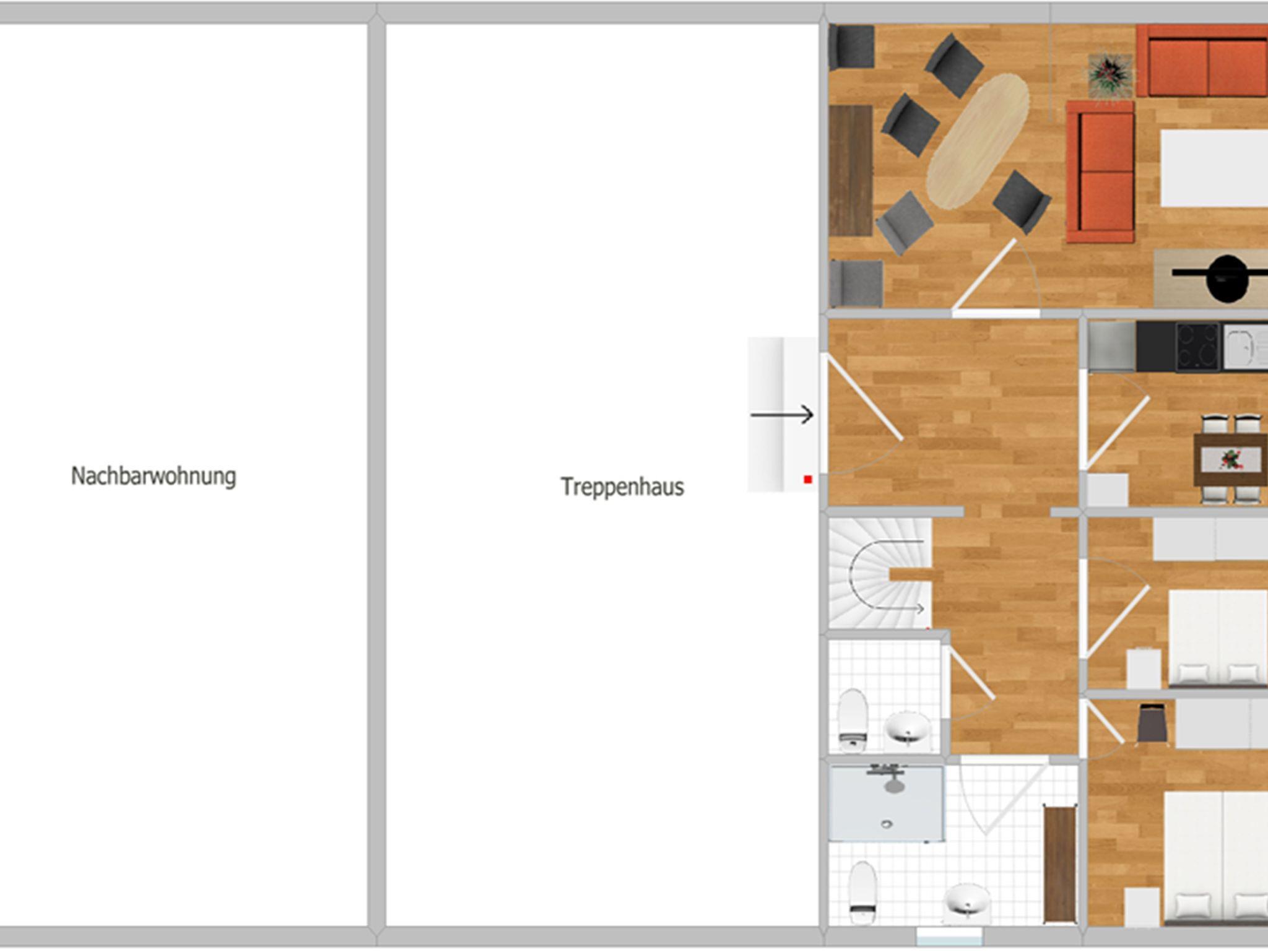 Es handelt sich um eine Maisonette Wohnung, mit einer Innentreppe für das Obergeschoss.