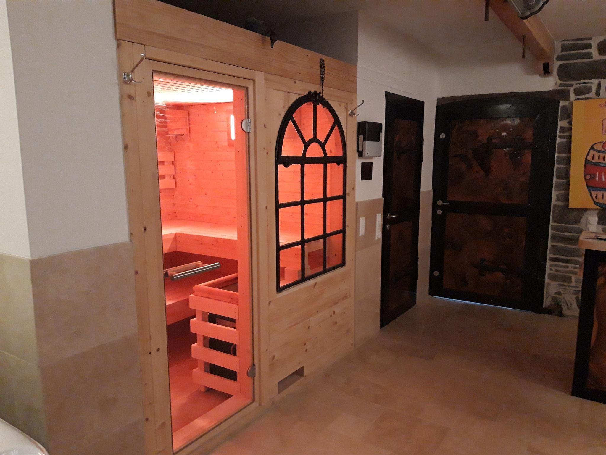 Ein separater Wellnessraum mit Sauna und einem TV steht den Gästen nach Absprache zur Verfügung. Die Nutztng ist kostenpflichtig.