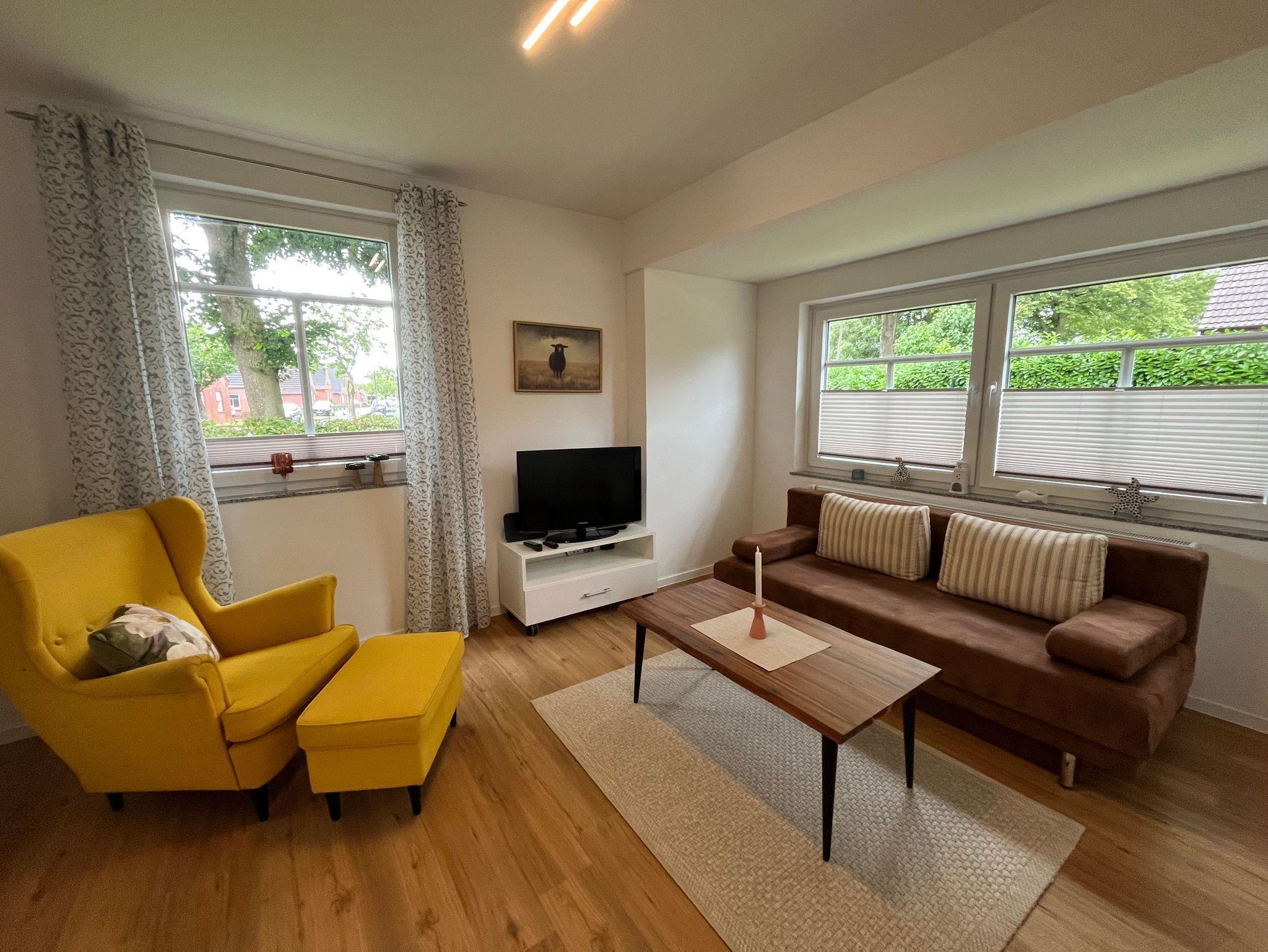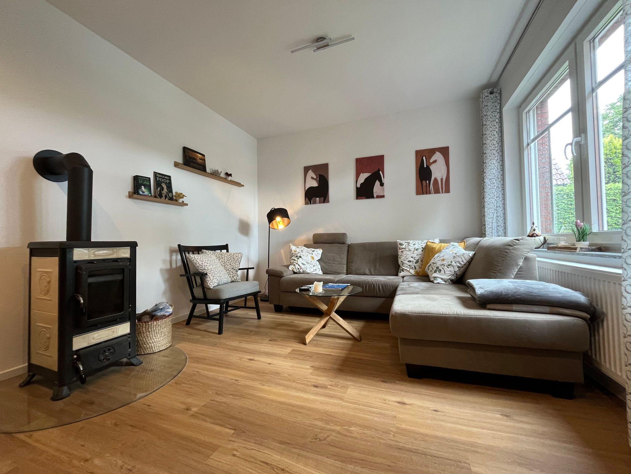 Separates Ferienhaus in ruhiger Lage im Ortsteil Oldersum. Großer Garten mit Terrasse, Fahrradunterstell- und Lademöglichkeit (Außensteckdose, keine Wallbox) und PKW-Parkplatz.