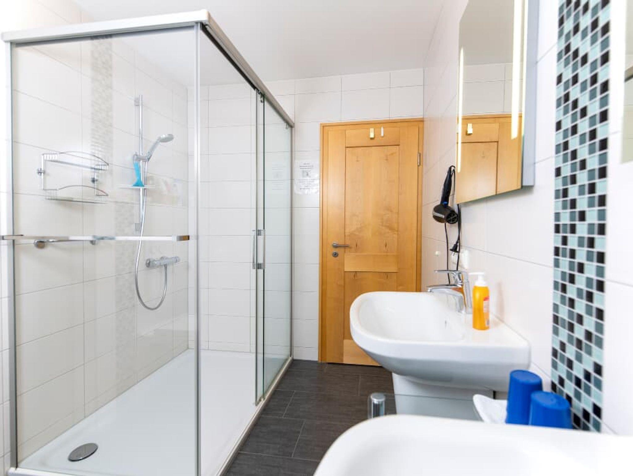 Verbringen Sie Ihren Urlaub im Erlebnisdorf Moosbach. Unsere 3 Sterne Ferienwohnung im Erdgeschoss mit 104 m² mit Südbalkon verfügt über zwei Schlafzimmer mit je einen Doppelbett sowie einer Schlafcouch in der Wohnküche und ist für zwei bis fünf Personen geeignet. Auch ein Kinderbett steht Ihnen zur Verfügung. Das neue Bad ist mit einer großen ebenerdiger Dusche und 2 Waschbecken sowie WC ausgestattet. Außerdem befindet sich in der Wohnung ein zusätzliches WC. Die neue Küchenzeile ist mit allen notwendigen Geräten wie Herd, Backofen, Mikrowolle, Kühl- und Gefrierkombination, Kaffeemaschine, Toaster, Eierkocher, Wasserkocher, Allesschneider, Mixer sowie ausreichend Geschirr, Gläsern und Besteck ausgestattet. Eine gemütliche Essecke und eine zusätzliche Couch vervollständigen die moderne Wohnküche. Im Wohnzimmer finden Sie eine gemütliche Couchgarnitur zum Kuscheln und Erholen sowie ein Flachbildfernseher mit Sat-Anschluss. Für Regentage liegen Spiele und Bücher bereit. Ein eigener Balkon mit Tisch, Stühlen und Markise sowie Liegen für den Garten laden zum Erholen und Entspannen ein. Selbstverständlich ist Bett- und Tischwäsche vorhanden. Geschirr-, Hand-, Badetücher und Föhn liegen bereit. Natürlich befindet sich in der Ferienwohnung ein Bügelbrett und Bügeleisen. Auch ein Näh- und Schuhputzset liegt für Sie bereit. WLAN steht für Sie kostenfrei zur Verfügung.