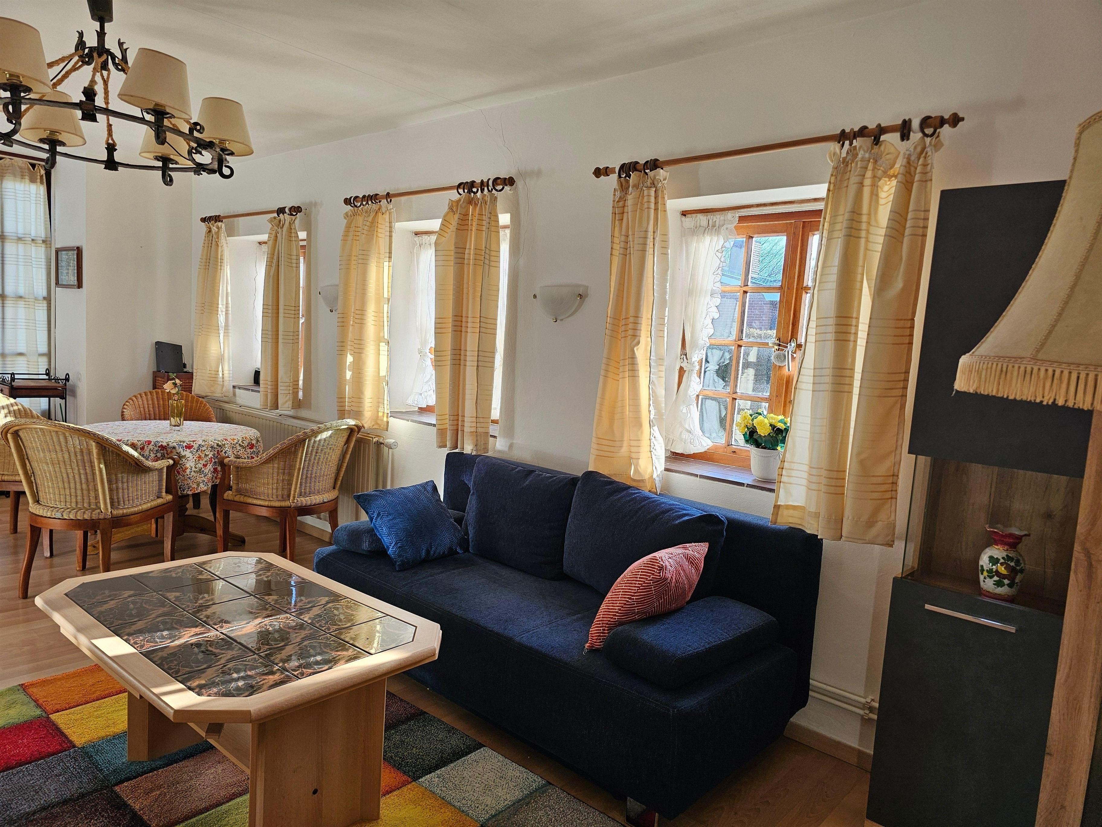 Die Wohnung verfügt über ein Schlafzimmer mit Doppelbett, ein Wohnzimmer mit Schlafcouch, Küche, Dusche/WC. Die Küche ist mit 2 Platten-Kochfeld, Backofen, Mikrowelle, Kaffeemaschine, Waßerkocher und Toaster ausgestattet. Im Wohnzimmer befindet sich ein Fernseher (Sat) und Radio.