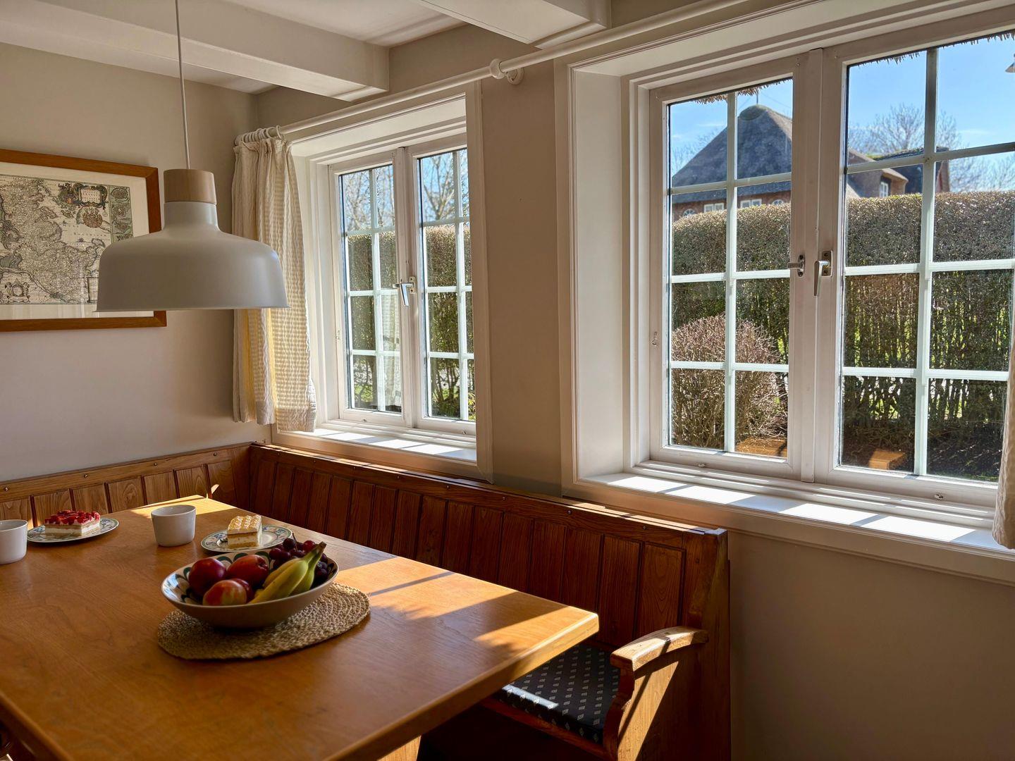 Lichtdurchflutete 2-Zimmer-Wohnung für 2-3 unter Reet im idyllischen Morsum. Eine Terrasse und ein großer Gemeinschaftsgarten laden zum Verweilen ein. Für weitere Fragen, steht Ihnen sehr gerne die Vermietung "Appartements Eberhardt" zur Verfügung.