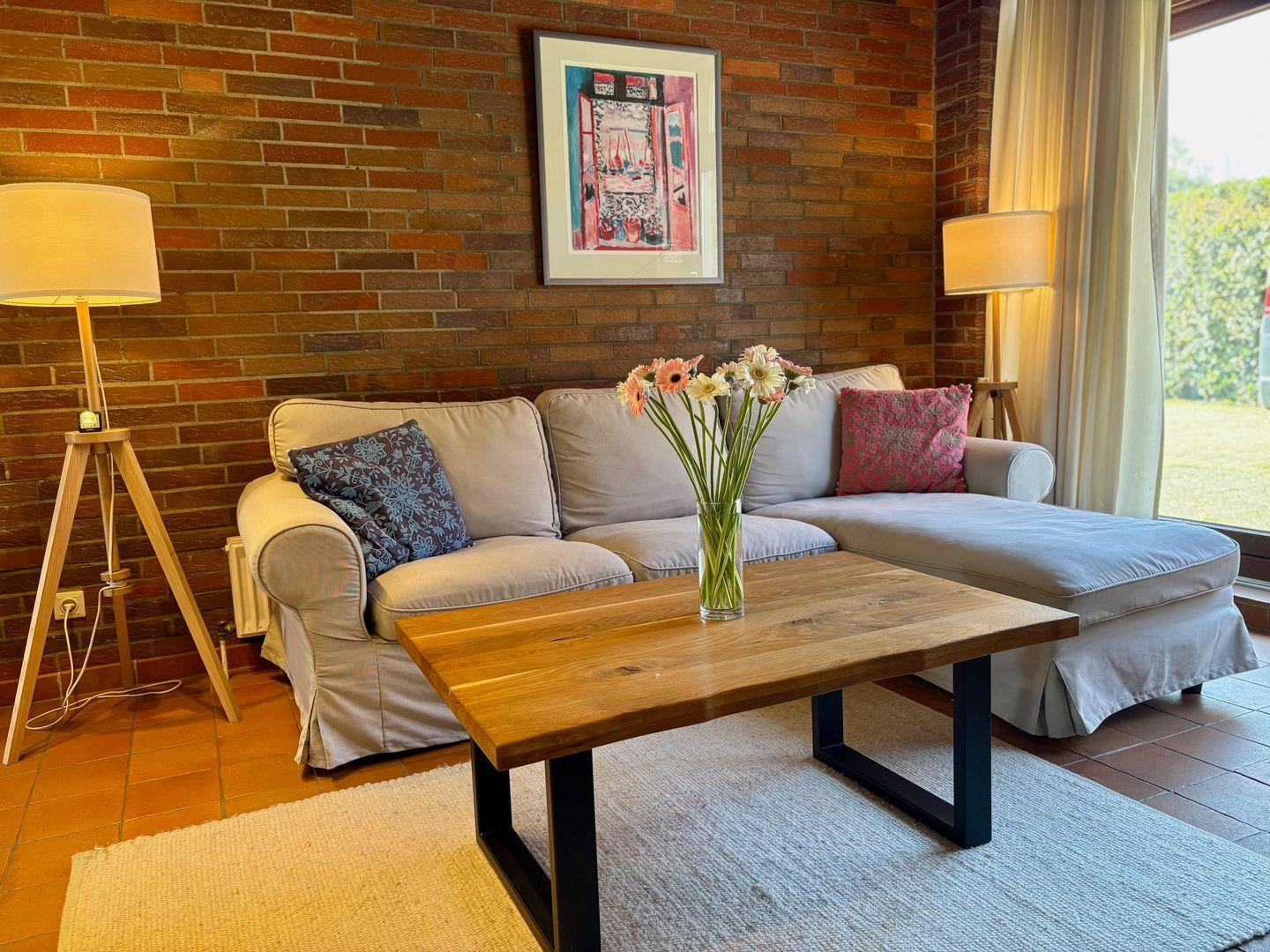 Im Erdgeschoss befindet sich der große, offene Wohn- und Essbereich mit voll ausgestatteter Küche sowie zwei herrliche Terrassen mit Ausrichtung nach Osten und Westen. Ebenfalls auf dieser Ebene liegen ein Duschbad sowie ein Schlafzimmer mit einem Doppelbett.