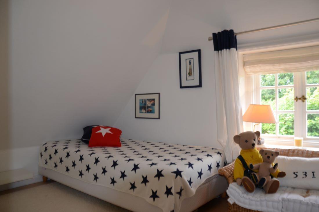 Ein Schlafzimmer mit einem Einzelbett.