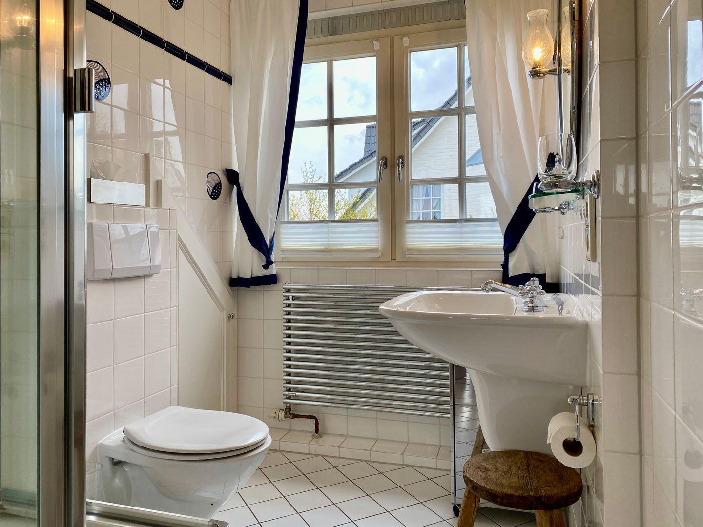 Auch das Badezimmer besticht mit viel Komfort mit einer Badewanne, die zum