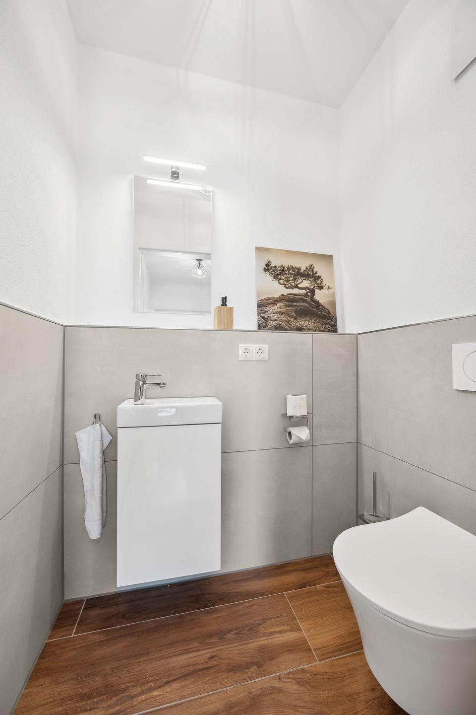 Gefliest mit hochwertigen Feinsteinzeugfliesen in Juraoptik