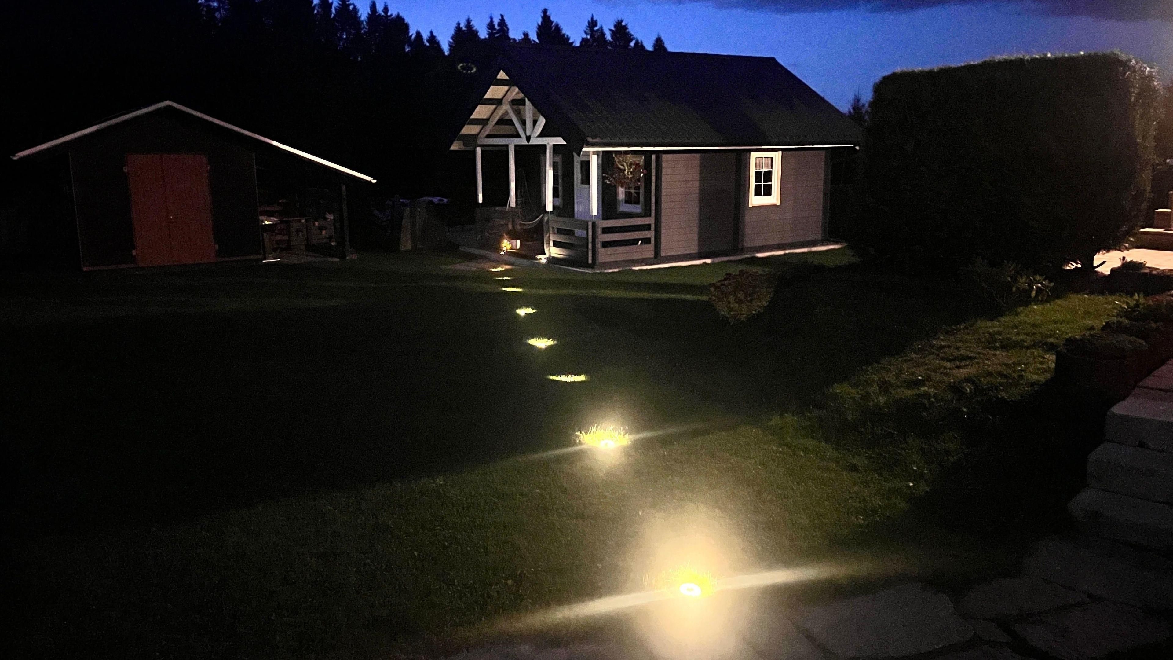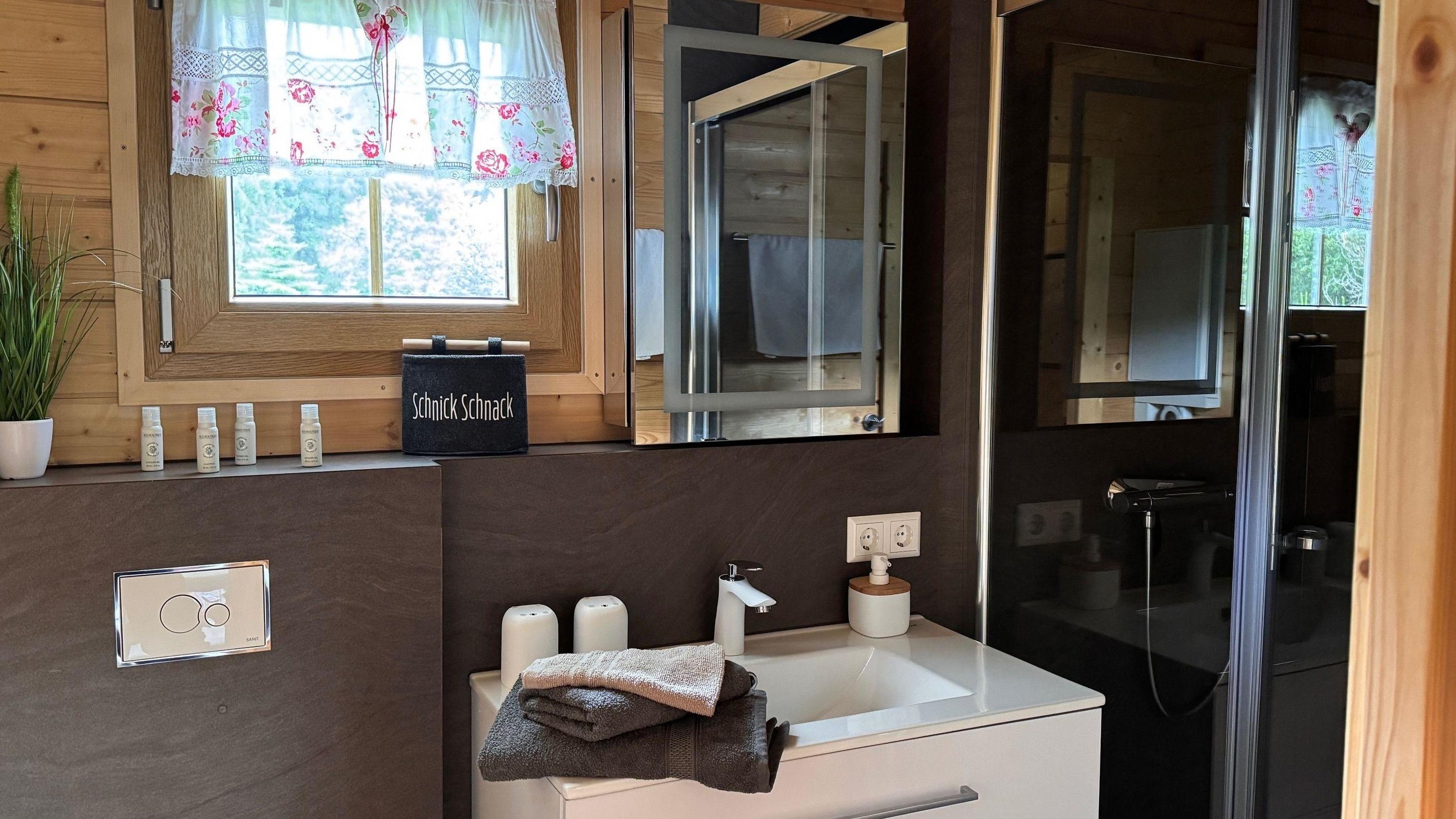 Rund um das Häuschen ist eine gepflegte Wiese, eine eigene separate Terrasse im grünen ist seit 10/2023 vorhanden.